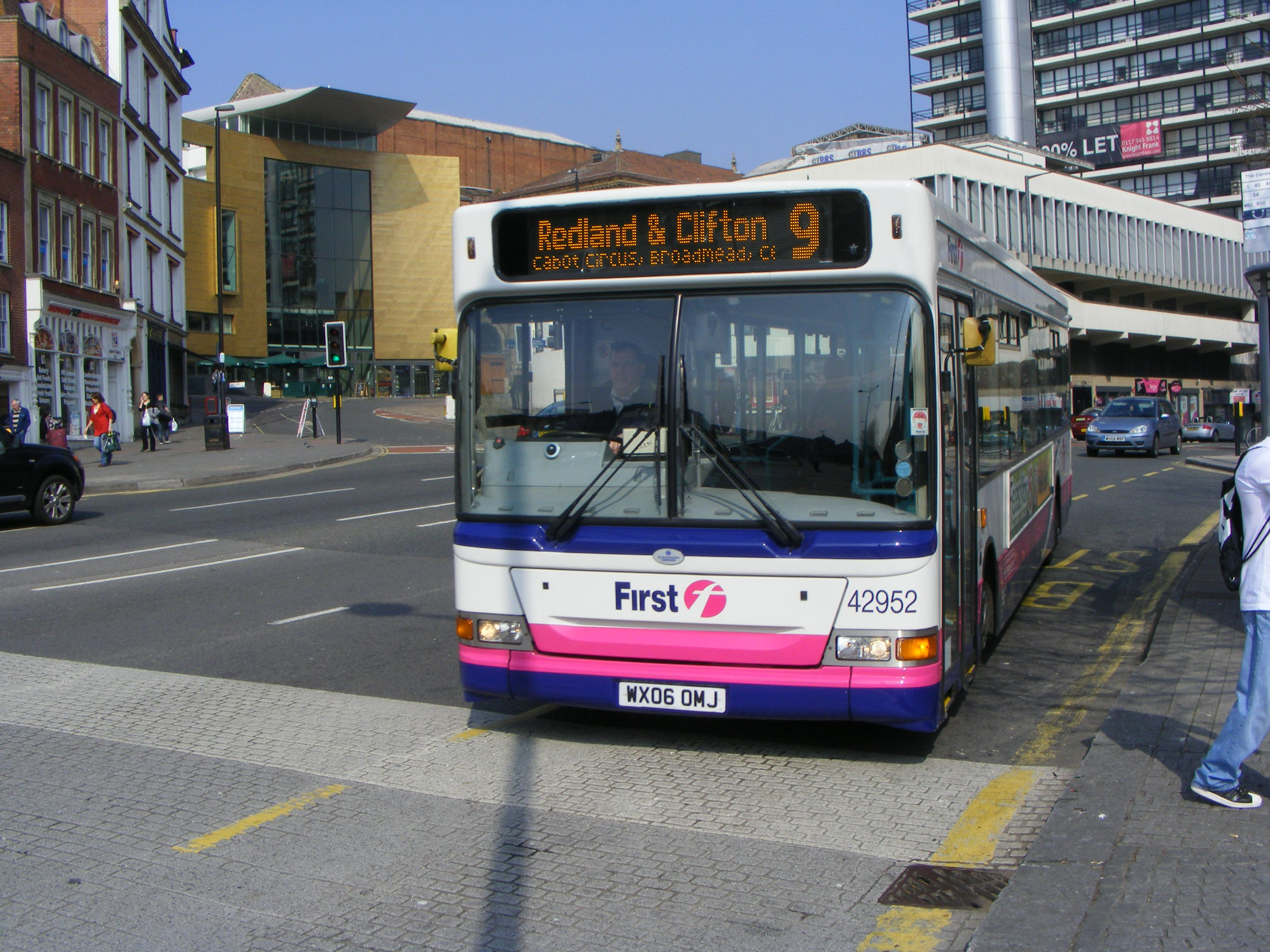 Newer Dennis Dart low floor buses generally have the Pointer 2 version of the Plaxton body. Early Dart SLF buses had a modified version of the original Pointer body, but it never looked as good as on the step entrance buses. The Pointer 2, as seen on this MPD Dart suits the chassis well. Headed for Hengrove depot from Colstan Avenue is 42709 (R709BAE).