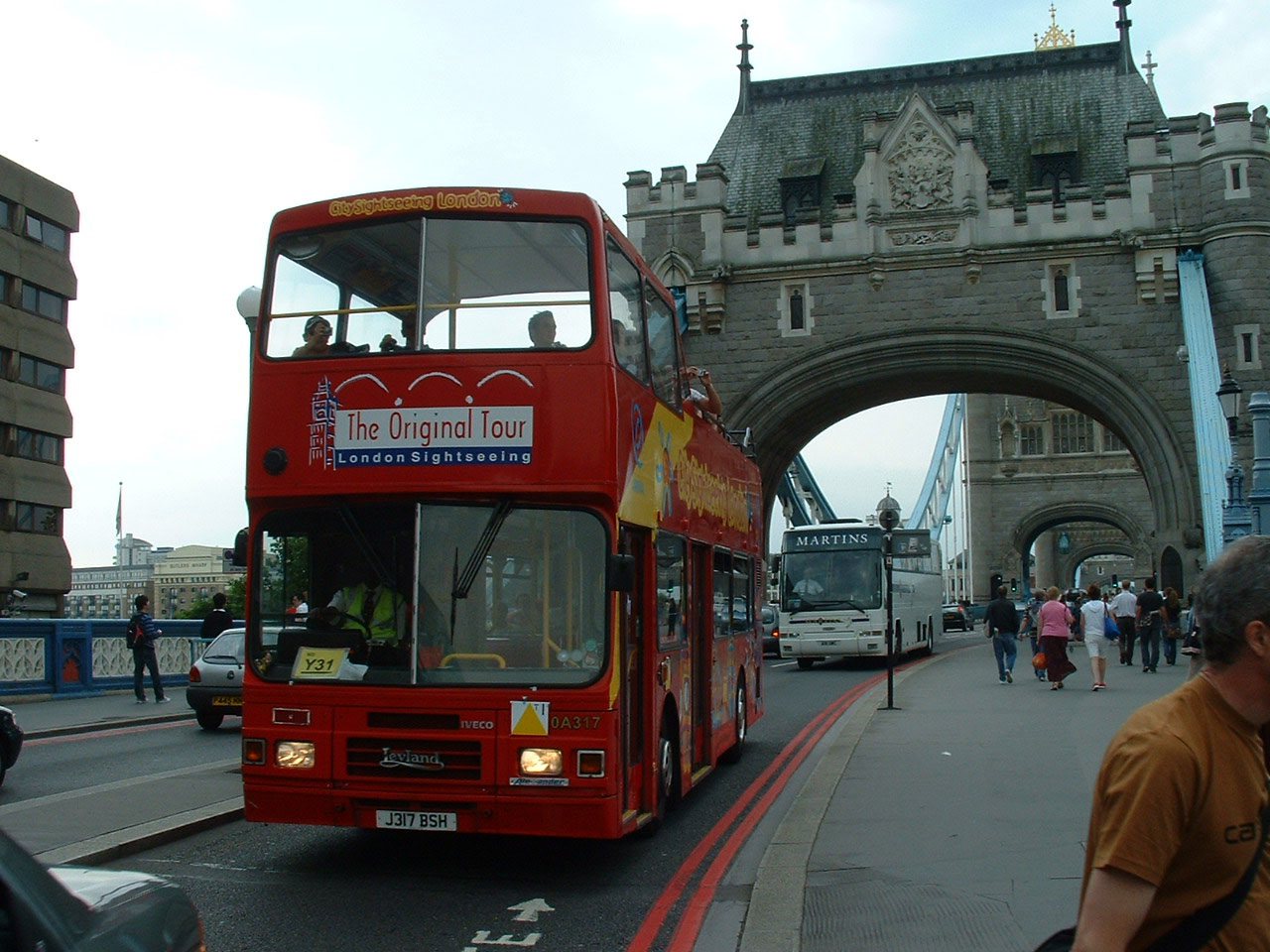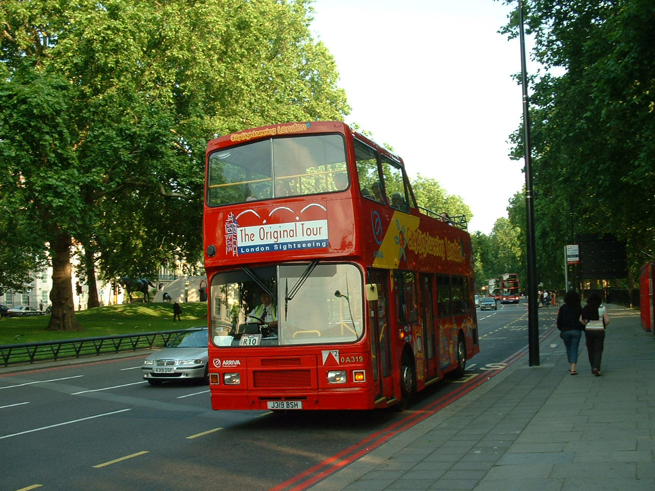 From the capital of Scotland to the capital of England. Former L319 (J319BSH) transformed into OA319 in Arriva's Original London Sightseeing Tour fleet, but dual branded in City Sightseeing colours. It is seen in June 2007 near Hyde Park Corner. |