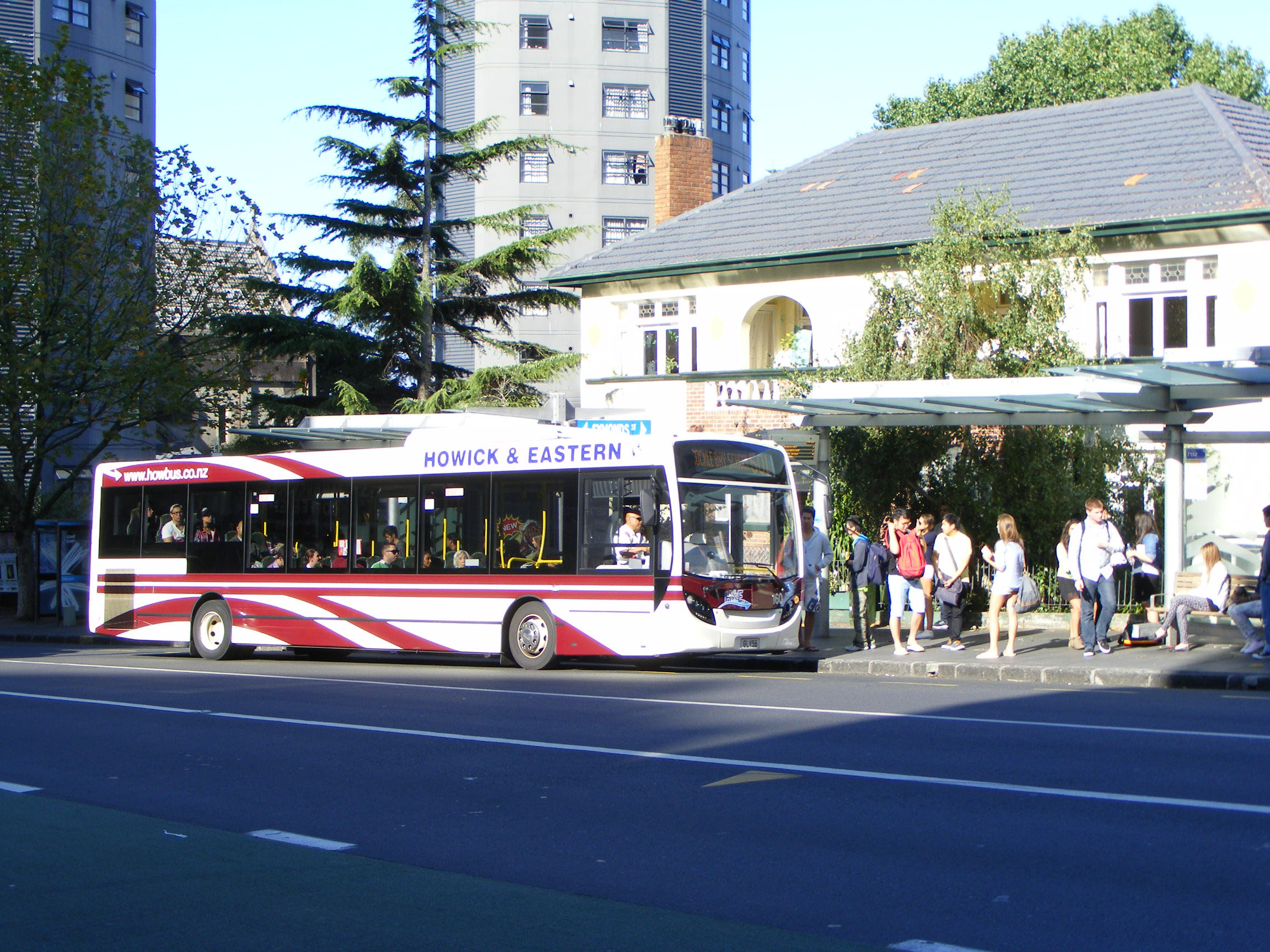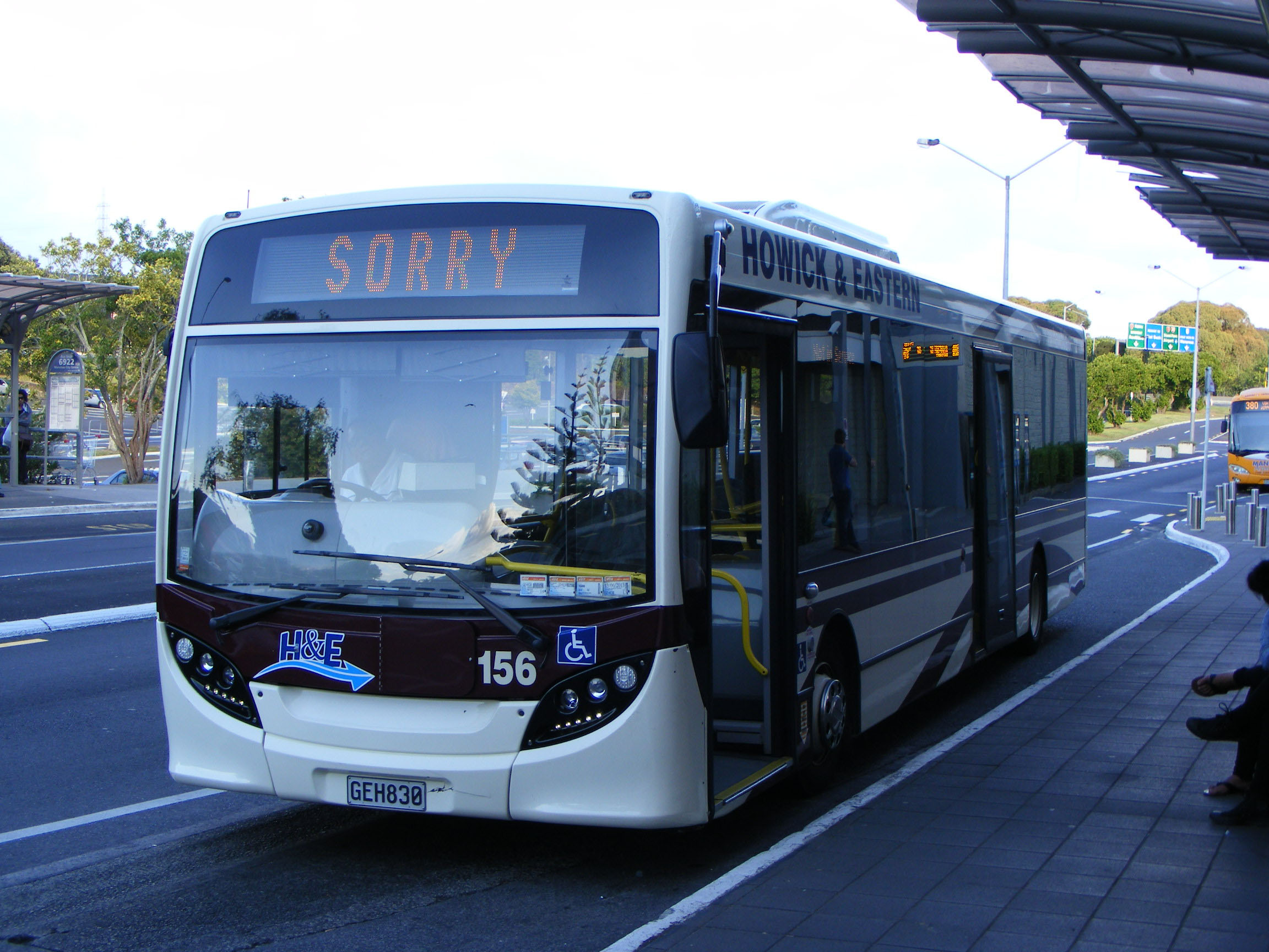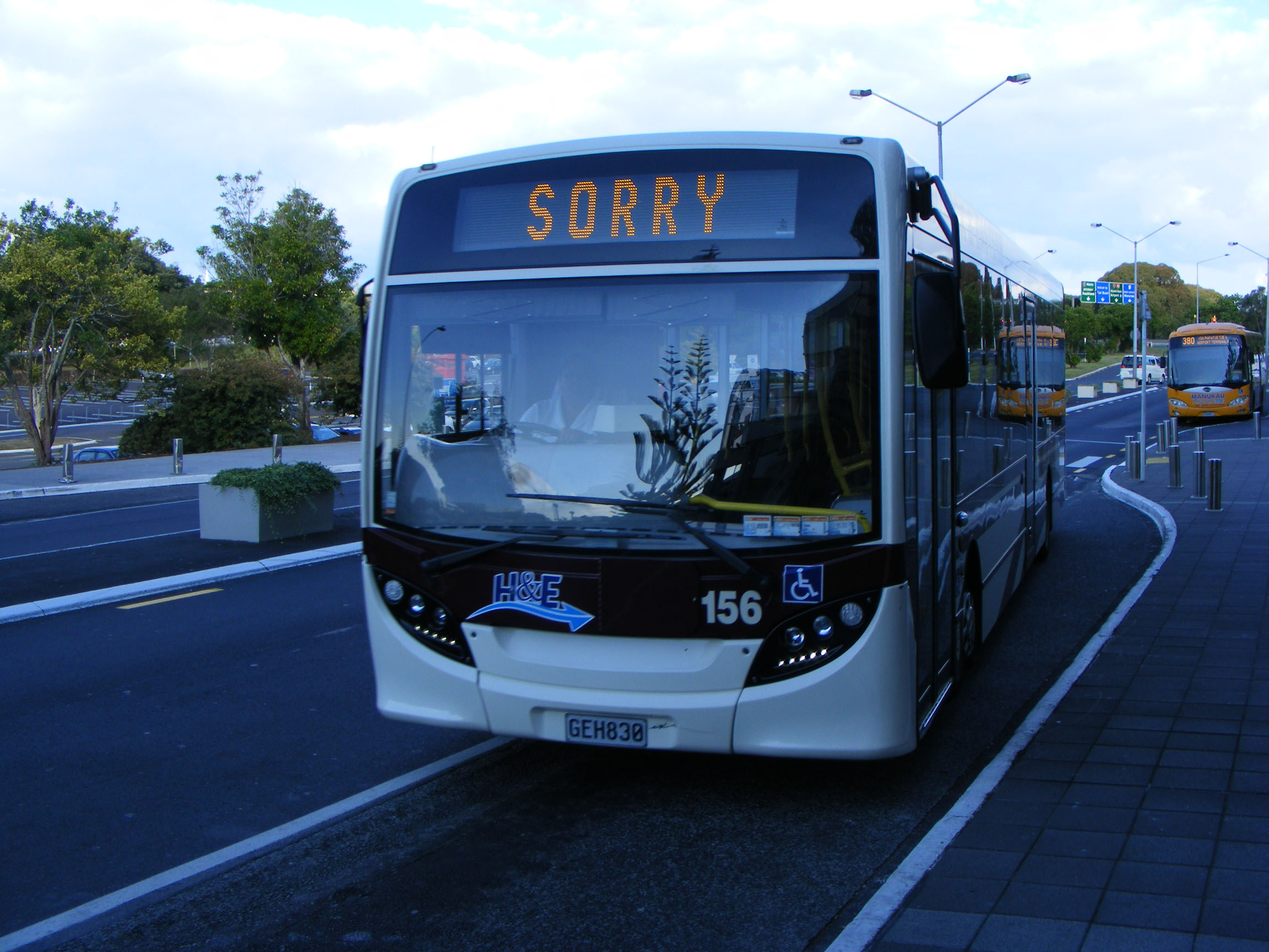 Still sorry, 156 is seen with the Manukau Airport BCI behind on the 380 at the old Manukau Bus Station.