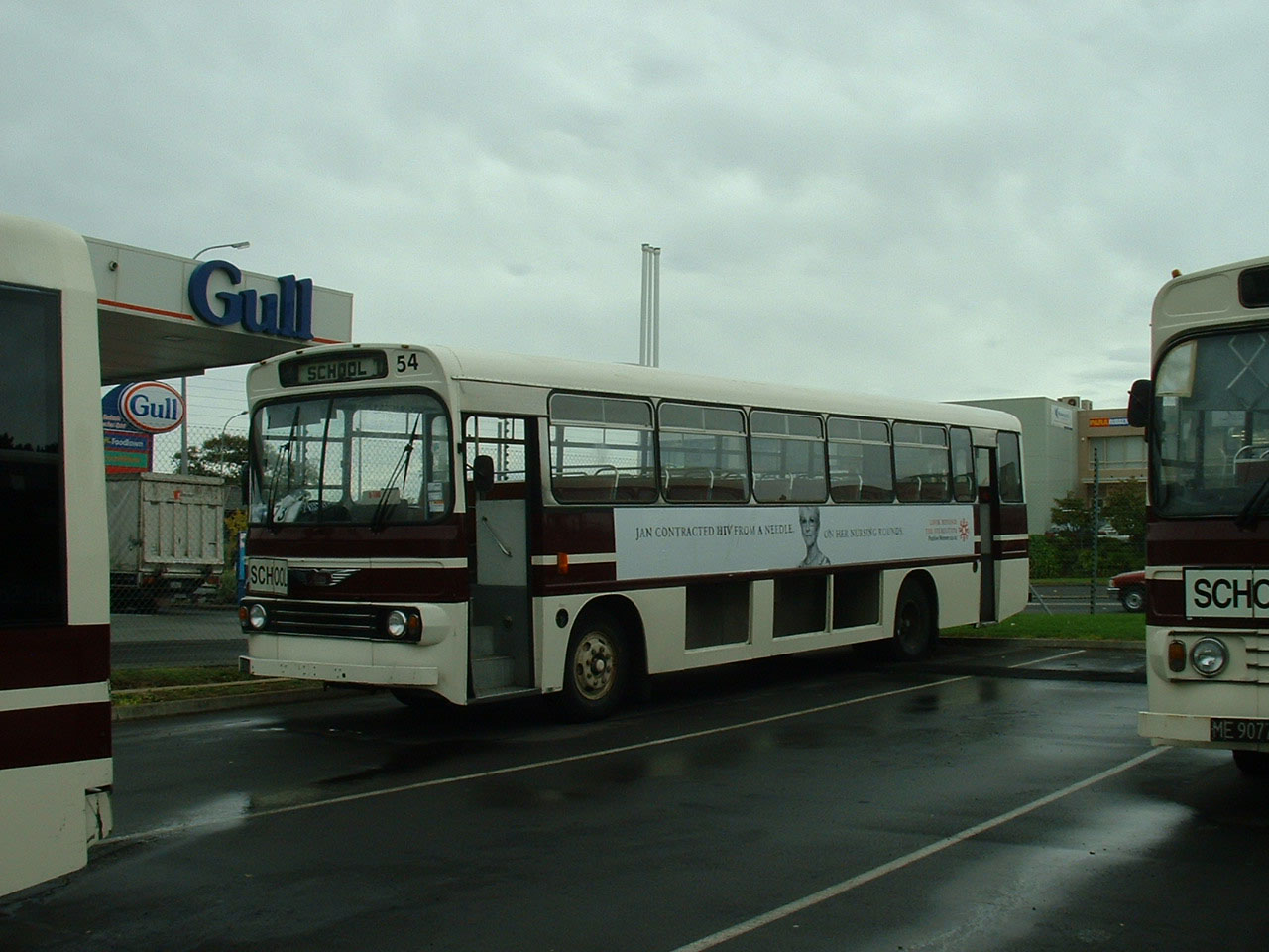 Very much at the end of its days is another Hino, with the only identification number 54. Parked in the depot yard in April 2008 the bus displays the open side lockers used for the likes of push chairs and the rear door configuration of days gone by.