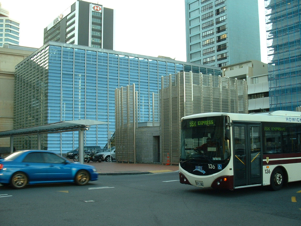 Larger and more stylish Designline bodied MAN buses transferred to Reesby, like 12.223 of 2003 seen when still Howick & Eastern 136 (BPL302). It is on the 55X Express at Britomart in April 2008. On arriving in Roturua it became 56, but retained it registration. |