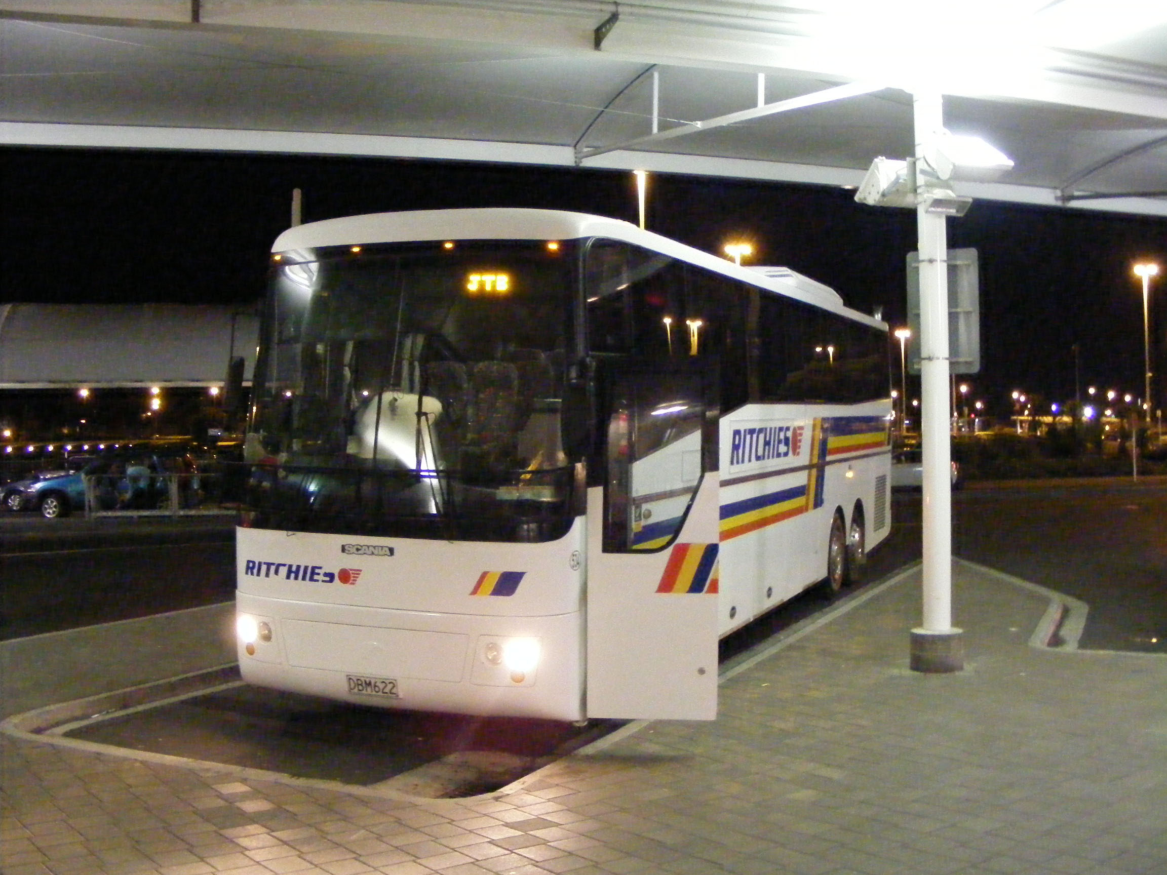 At the Hamilton Bus Station one evening in March 2013 is similar Kiwi bodied K124IB 534 again, no longer in plain white.
