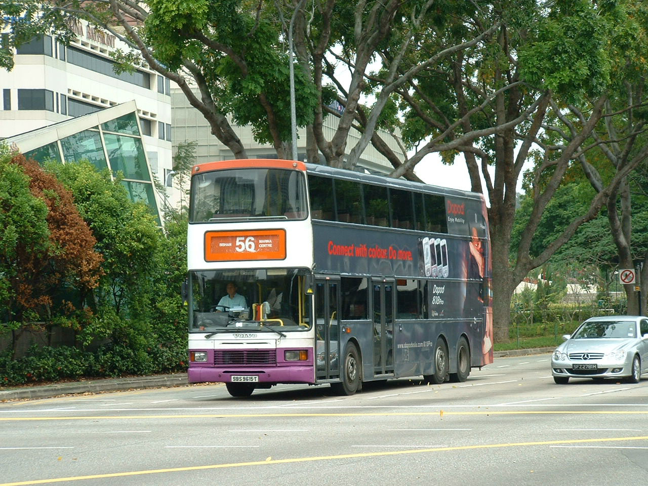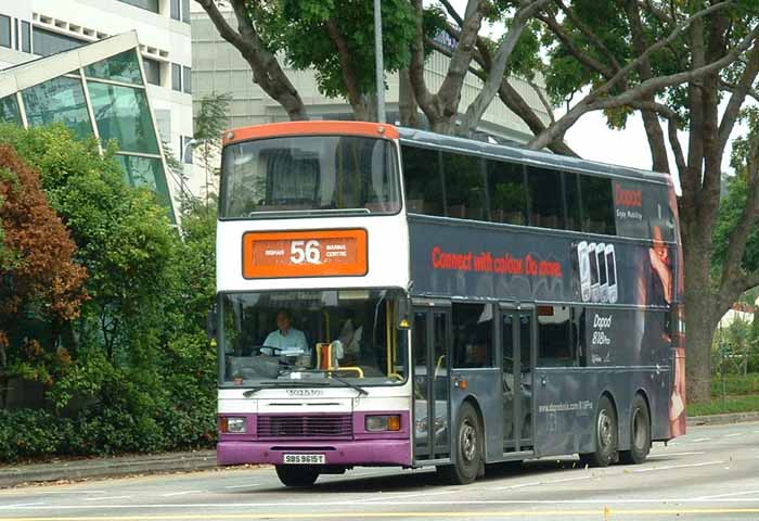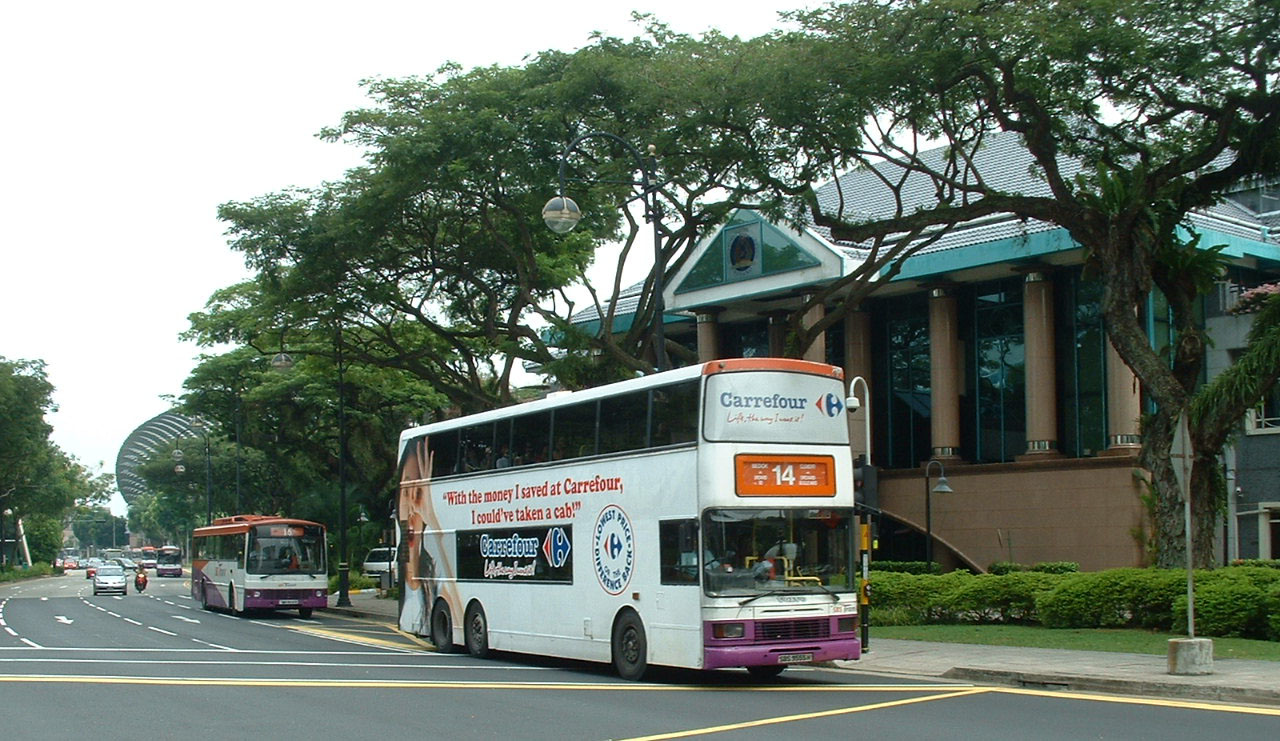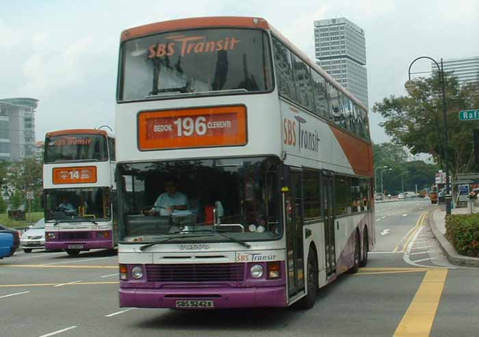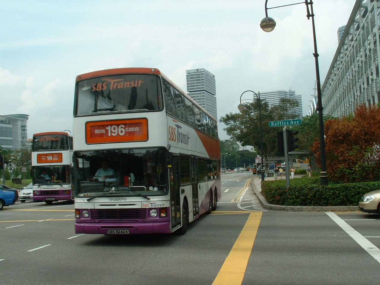 Crossing Raffles Avenue are this pair of Volvo Olympians, with 9242K on the 196 from Bedok.