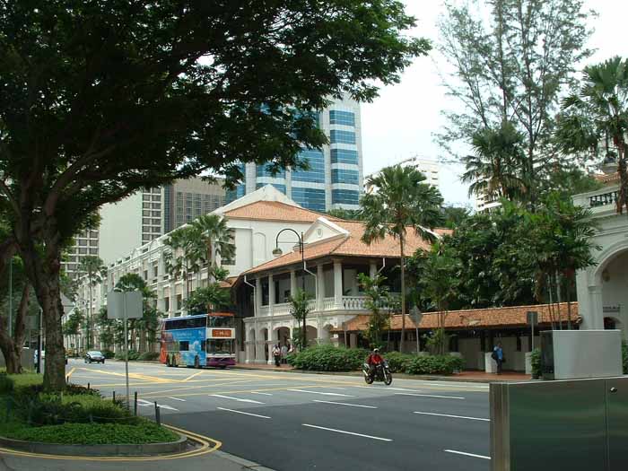 An advert Volvo Olympian seen outside the world famous Raffles Hotel in April 2005.