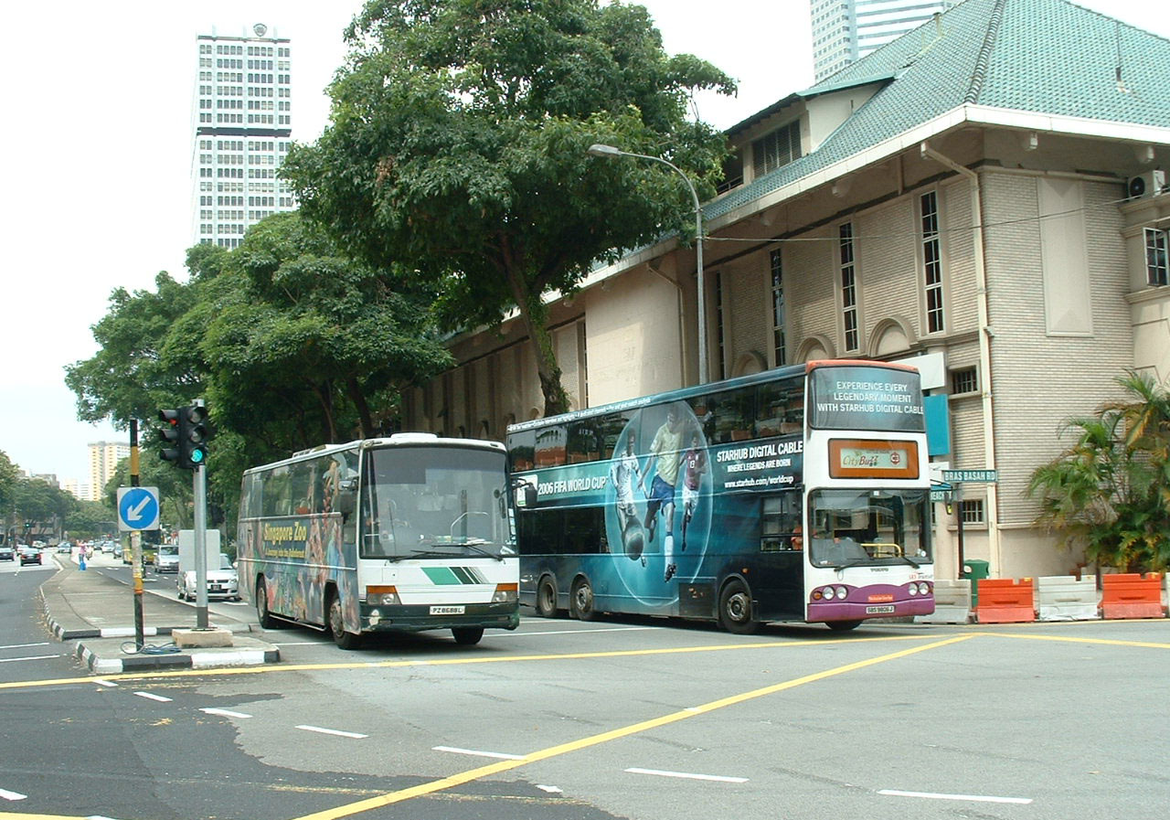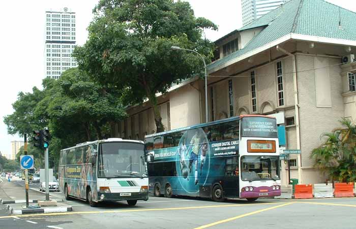 Olympian 9806J, seen here in the company of a Zoo Tour coach, has a wrap for a cable tv company.