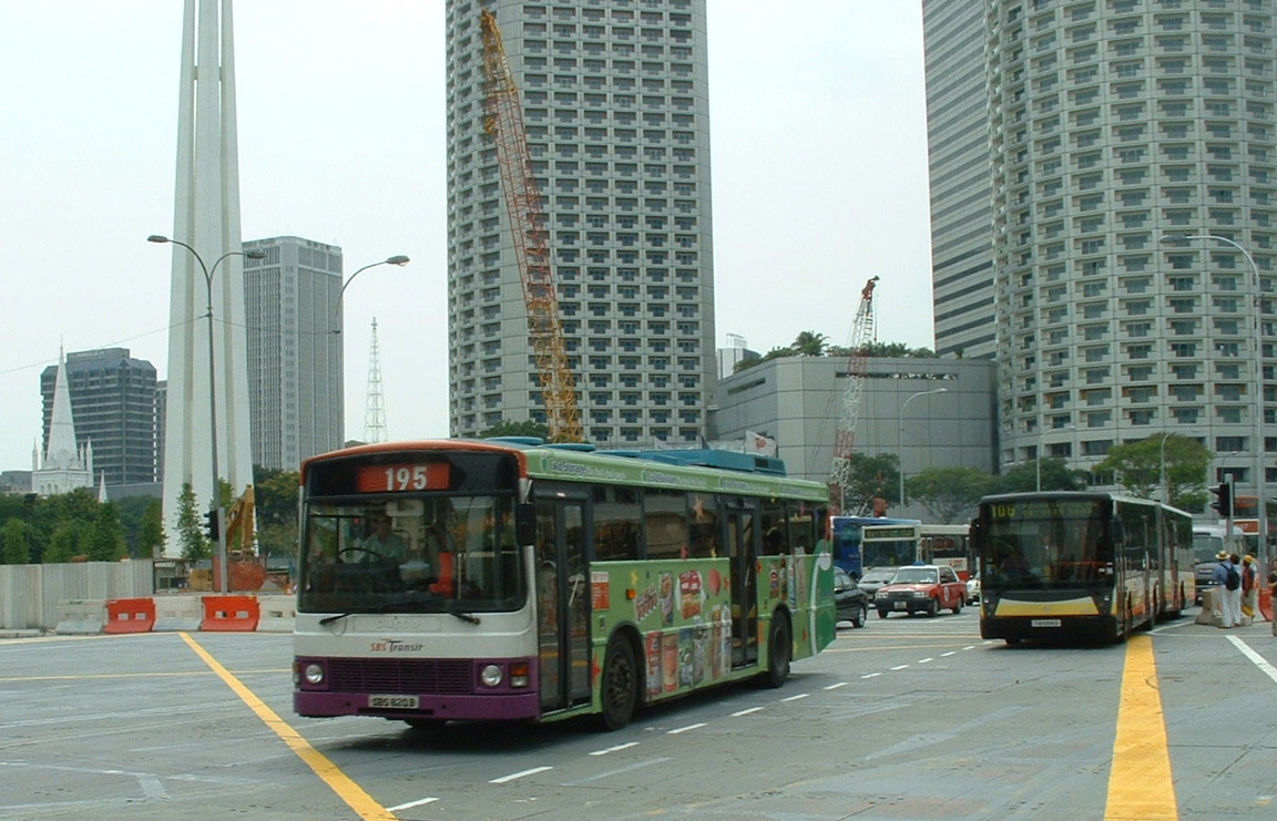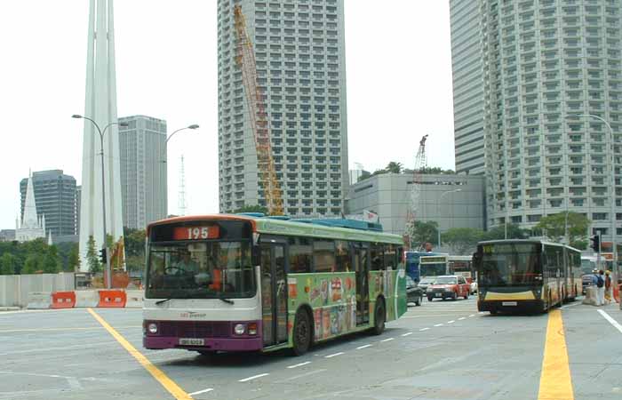 Boasting an advert is Volvo 820B, being chased by a SMRT liveried TIBS Hispano bodied German bendibus.