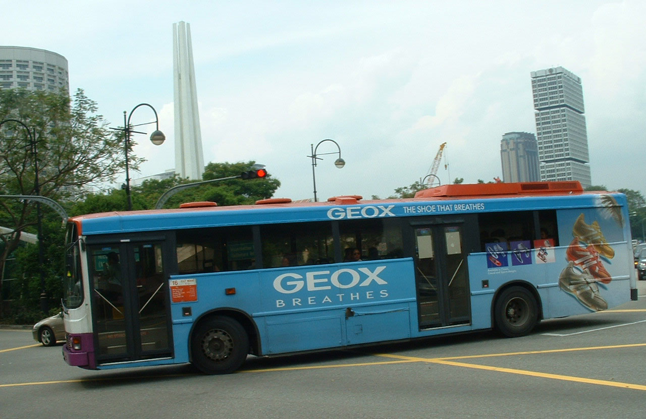 A Geox advert on a bus which is not in black, white or fleet colours!