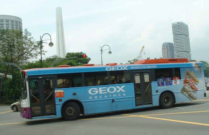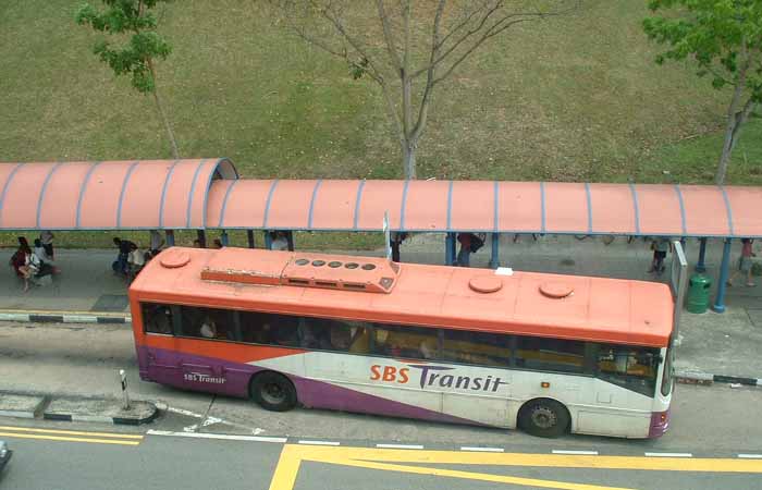 Viewed from an MRT Station on the Changi Airport line is what is thought to be another Alexander PS bodied bus, the roof mounted units matching the style better than the Metsec variants.