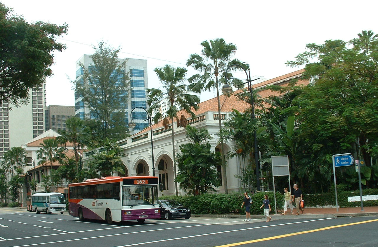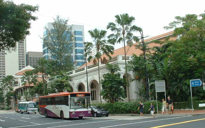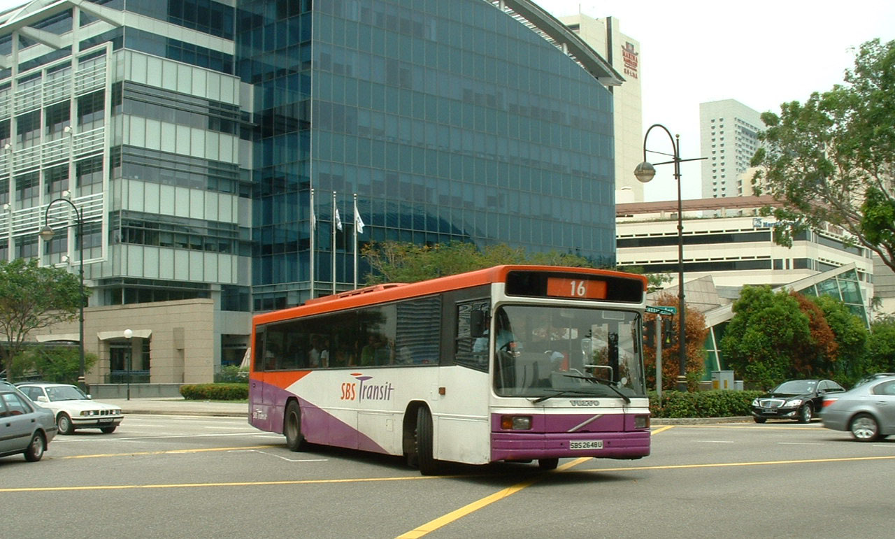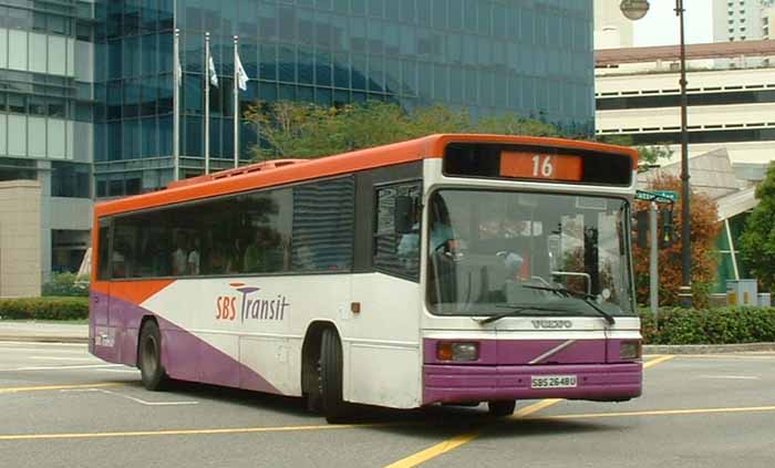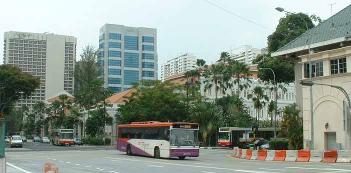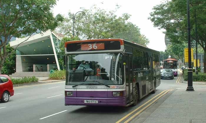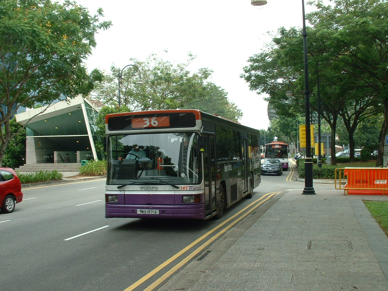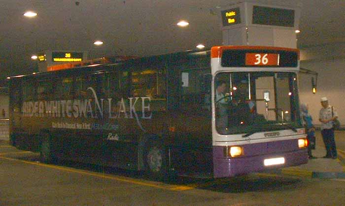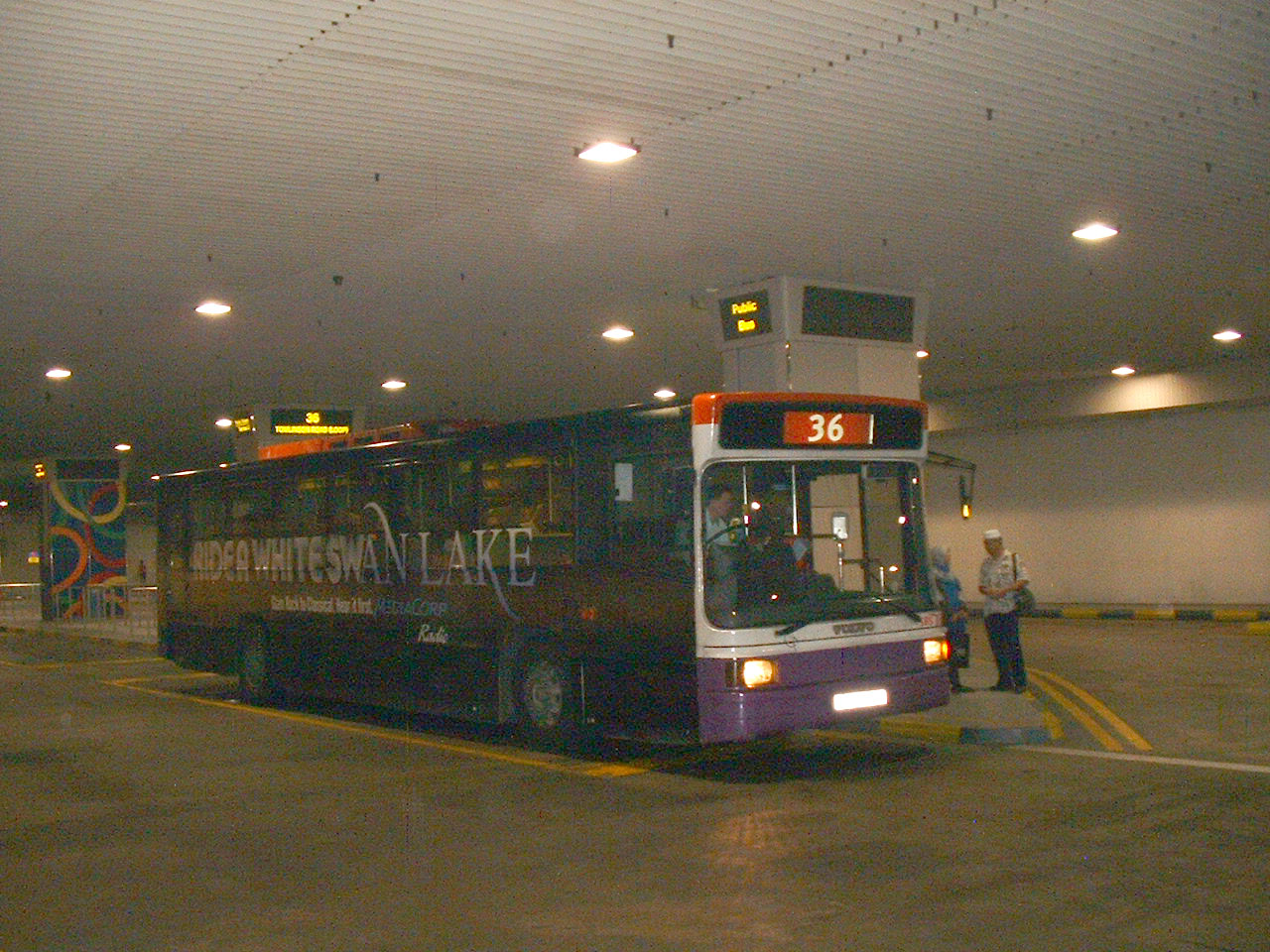 Adevrtising the Rider White Swan Lake, this Srider B10M is seen in the gloom of Changi Airport's underground Bus Station in April 2006.