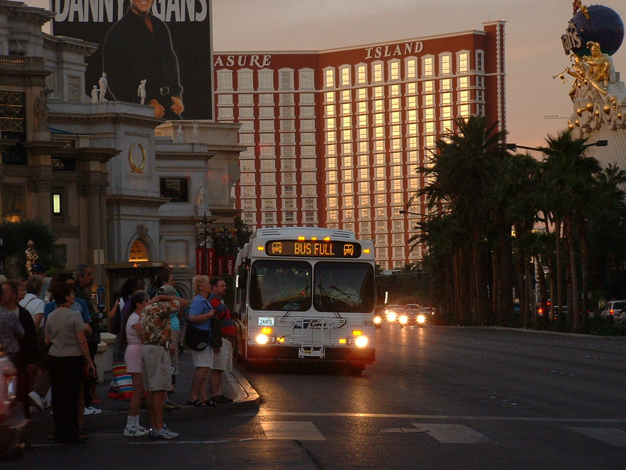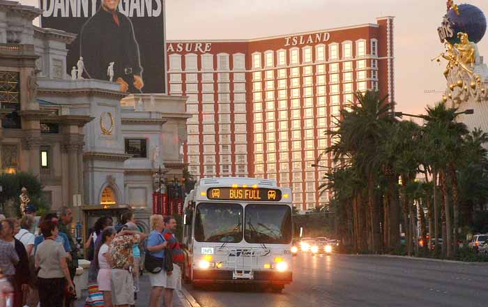 Bus Full was a regular display on the New Flyers plying The Strip. The reality was often contrary as there were frequently seats and nearly always standing space towards the rear. Whether the same would apply with the top deck of the Enviro500 fleet remained to be seen. CAT 805 is seen heading south outside Treasure Island. |