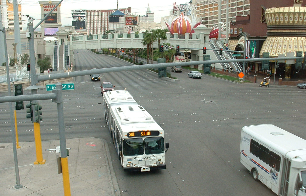 Strip is another destination on CAT buses not to be taken literally! Caesar's Palace can be seen behind New Flyer 827. |