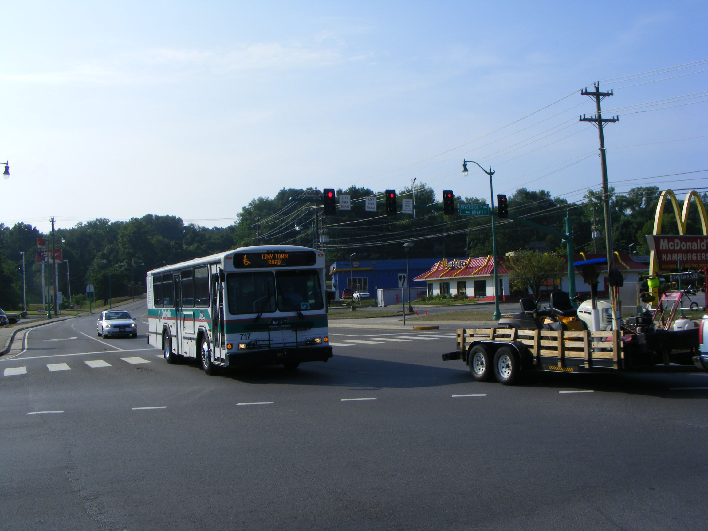 Approaching the city centre on the endearingly named "Tiny Town Road" route is "tiny" Gillig 717.