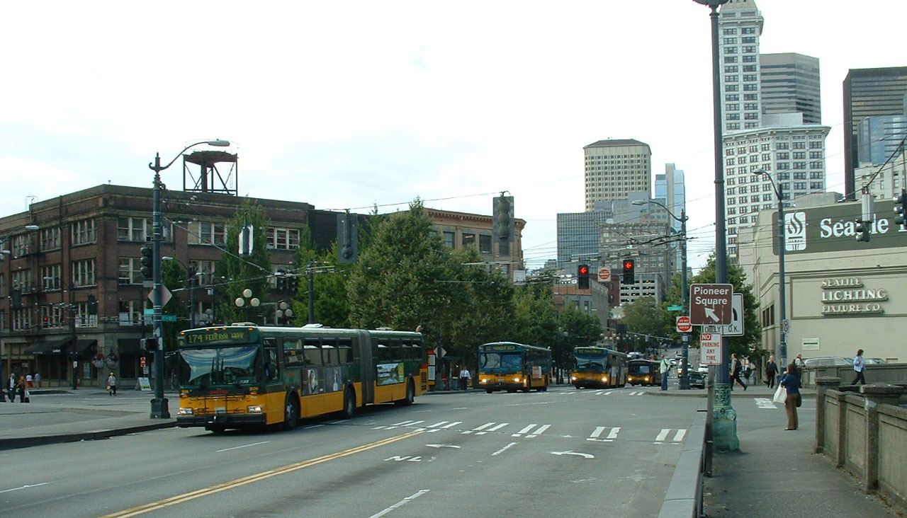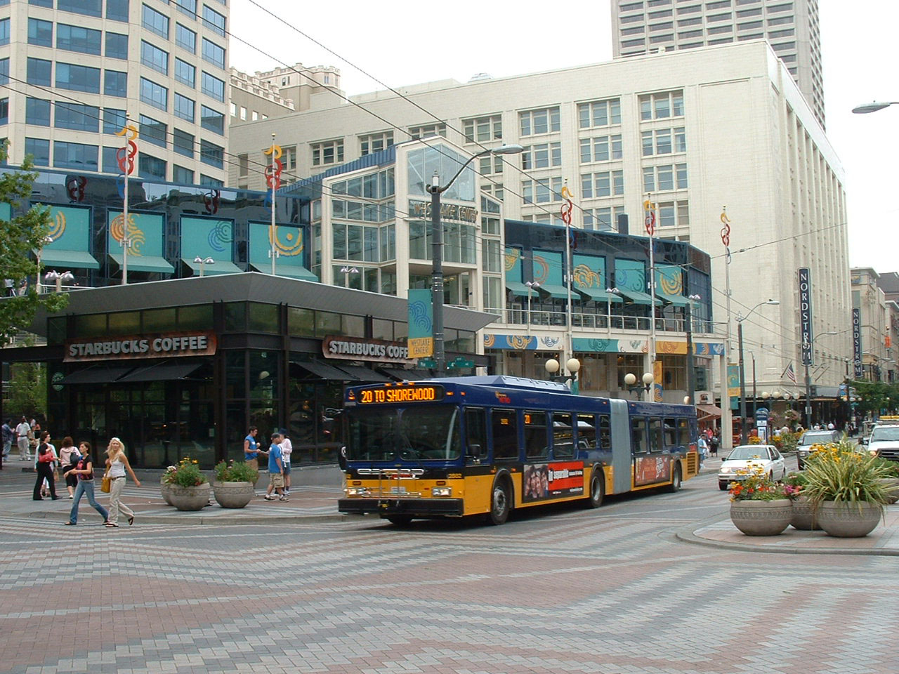 Another of the small D60LF batch when new in the city centre passing one of the many Starbucks cafes, Seattle of course being home to the first ever Starbucks. This is either 2882 or 2892.