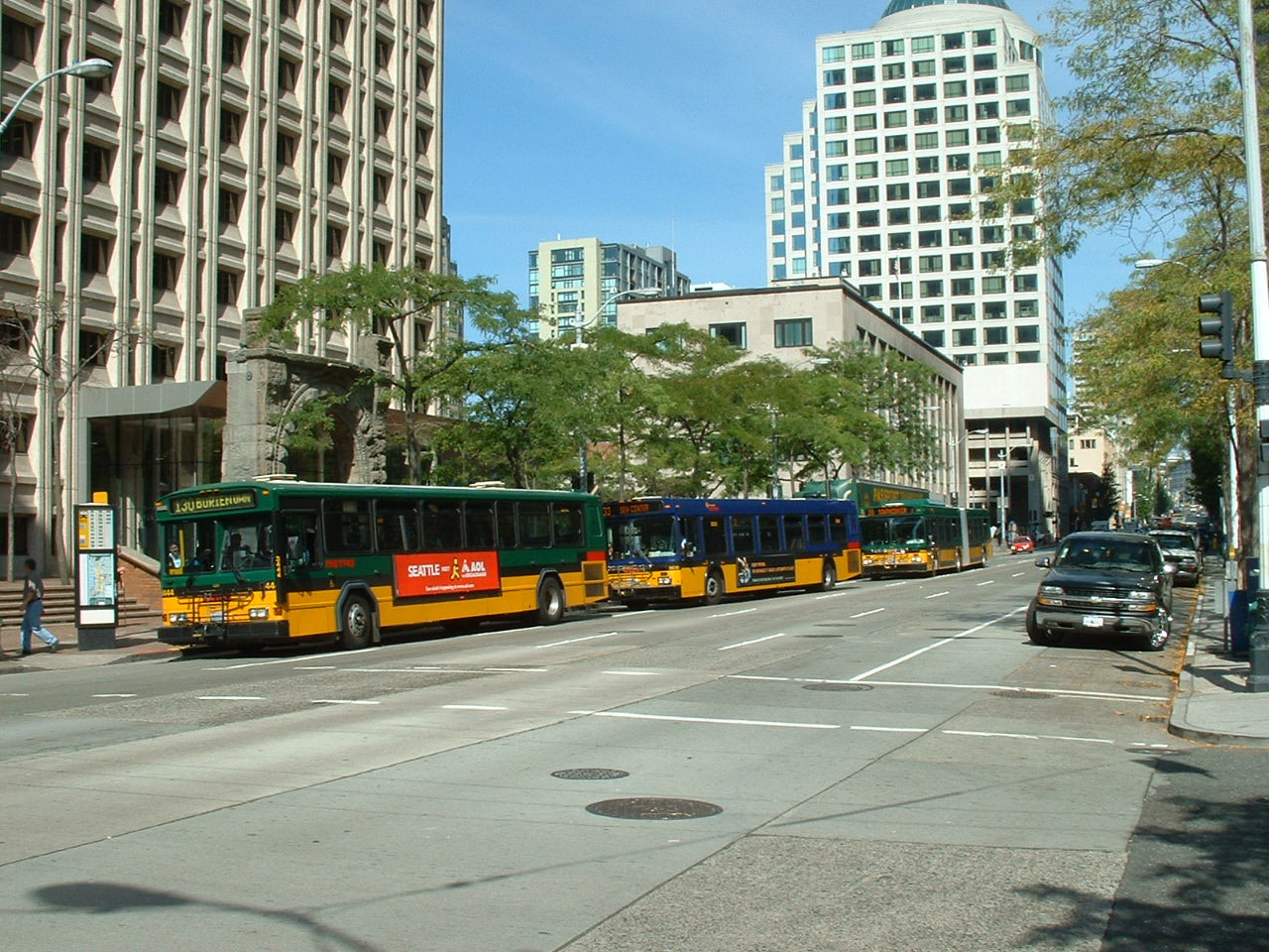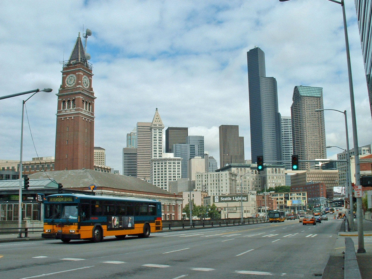 Forward three years to August 2007 and Gillig Phantom 3309 is passing the King Street Union Station from the vantage point of 4th Avenue. The old skyscraper in the center of the photo is the 1914 Smith Tower.
