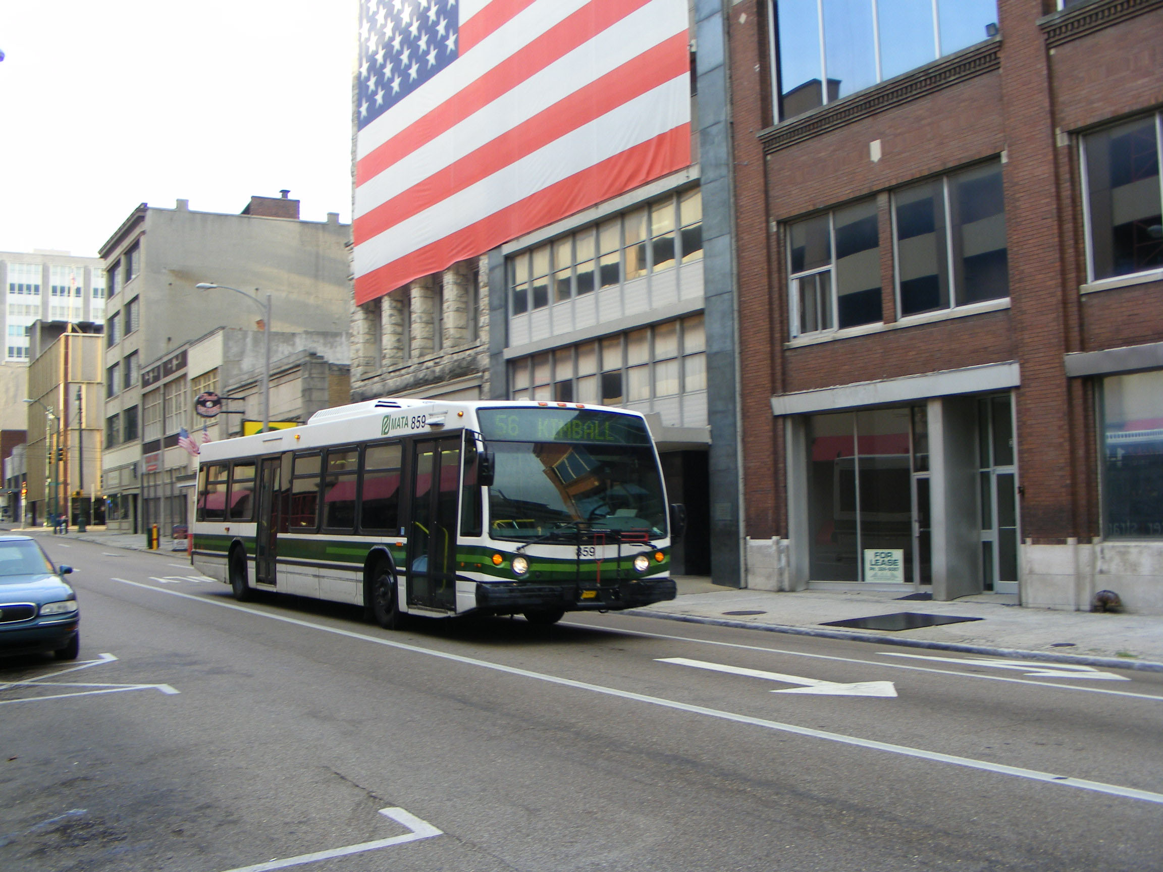 NovaBus 905 is seen passing Memphis' iconic Great American Pyramid. However Great White Elephant might be a better name, the pyramid was conceptualised as a shopping mall but built as a performance arena. Sadly the acoustics are from from ideal and it was last used as such in 2007. The succession of political blunders that have dogged it has most recently seen it turn into a megastore for hunting, fishing and shooting chain Bass Pro.