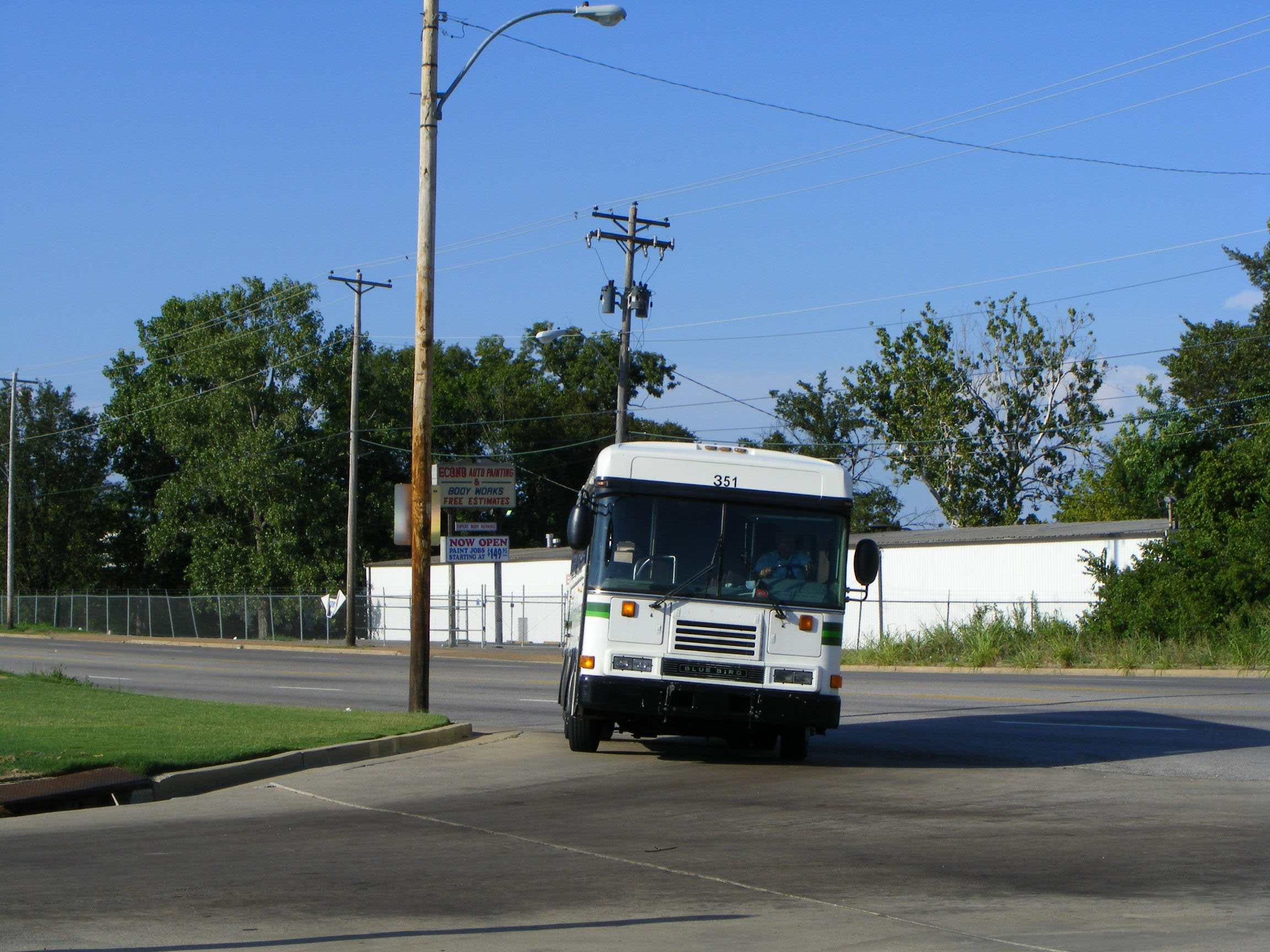 Bluebird 351 lurches wildly as it re-enters the depot. Hopefully any wheelchairs on board were well secured!