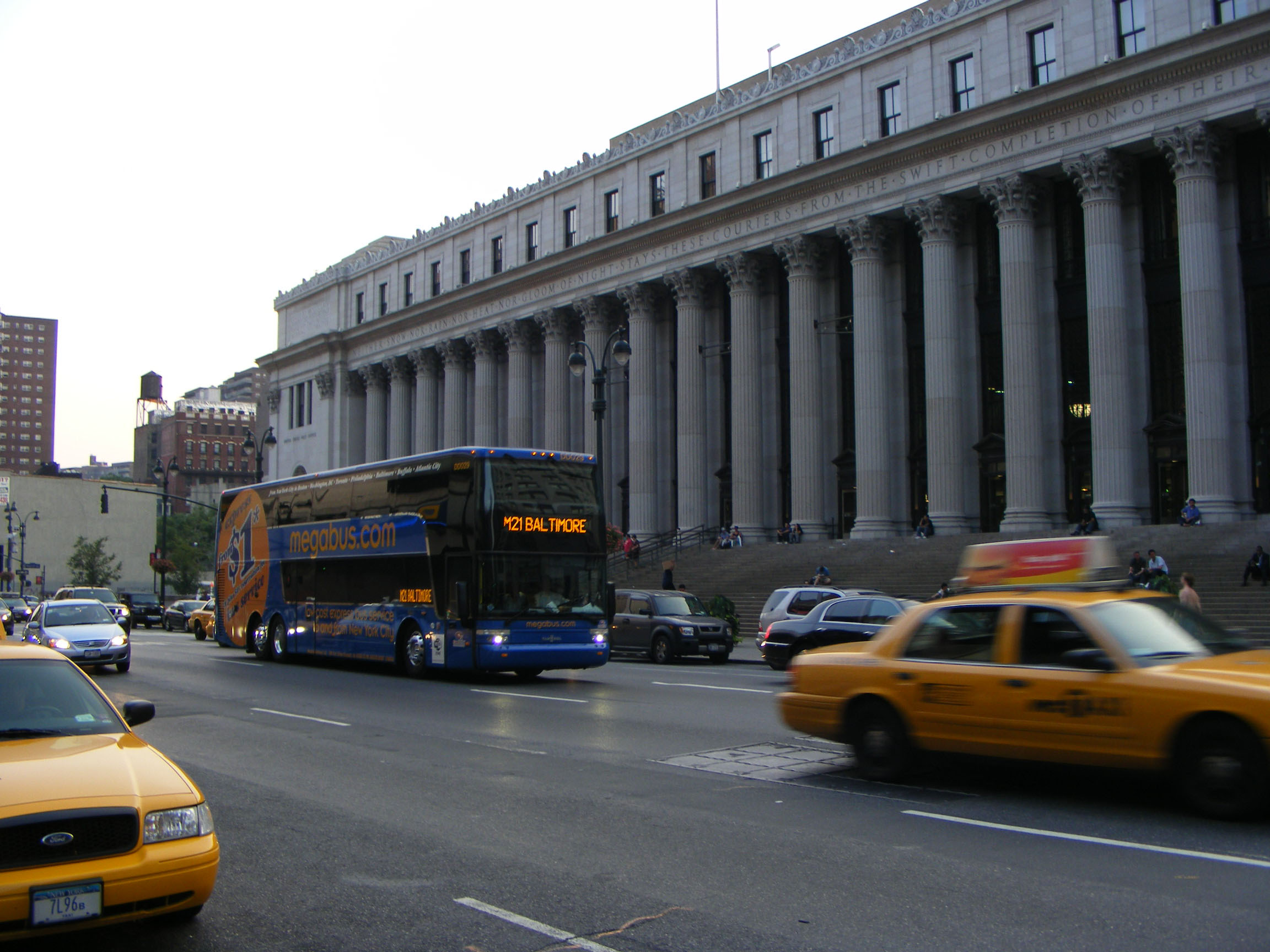 In July 2008 this Van Hool doubledecker, DD029, leaving New York for Baltimore was the shape of things to come. Stagecoach placed an order for 96 similar wifi equiped machines that October for its North Anerican Megabus network. These coaches began arriving in July 2009 and there are photos of the newly delivered machines in our Canadian gallery. |