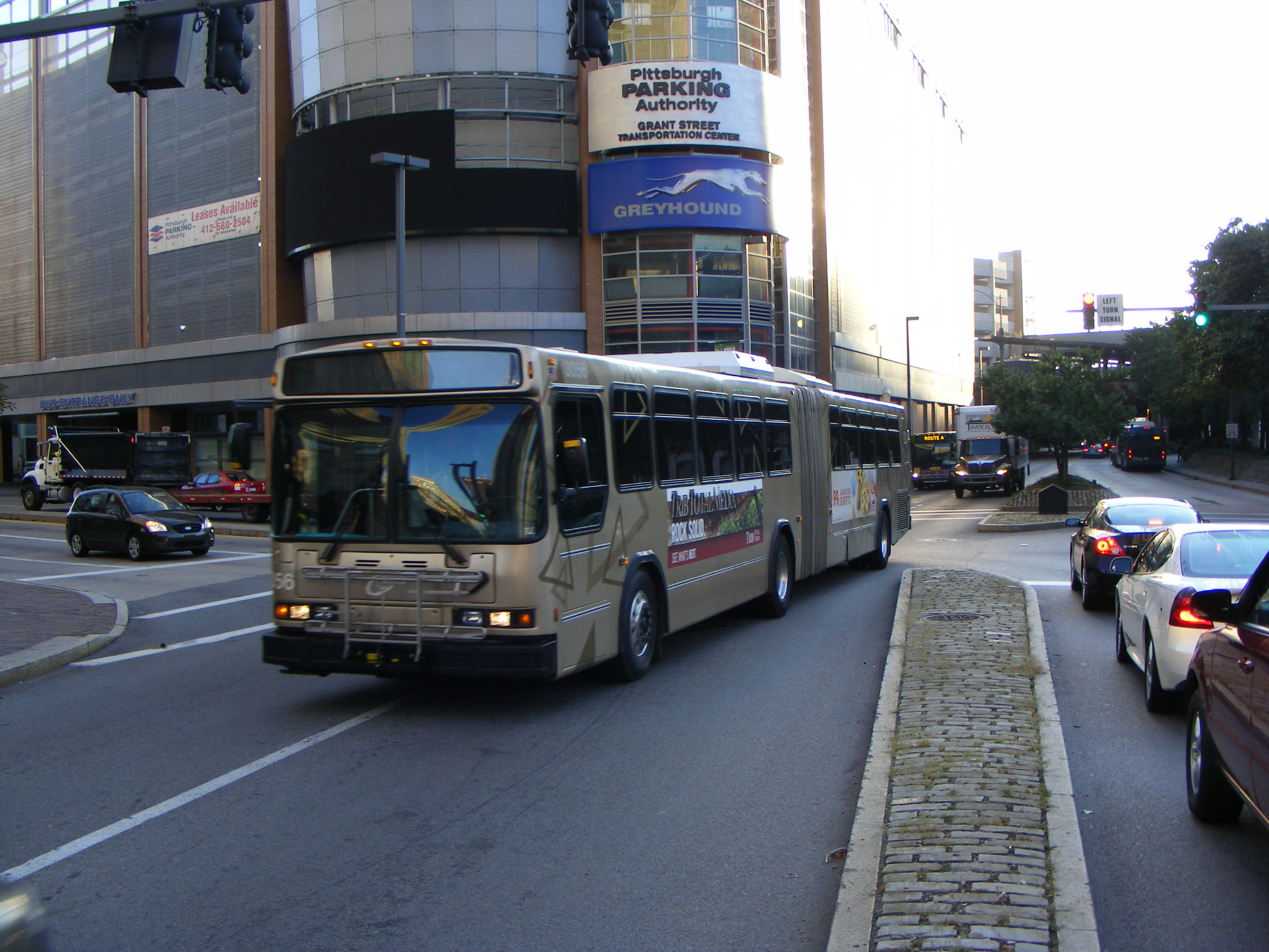 Neoplan articulated AN460 3056 is one of twenty five (3051-3075) delivered in 1998. A further batch followed in 2005/6, but all the first batch were replaced by new New Flyer D60LFR artics due in 2011, a year after this picture was taken outside the downtown Greyhound terminal. |