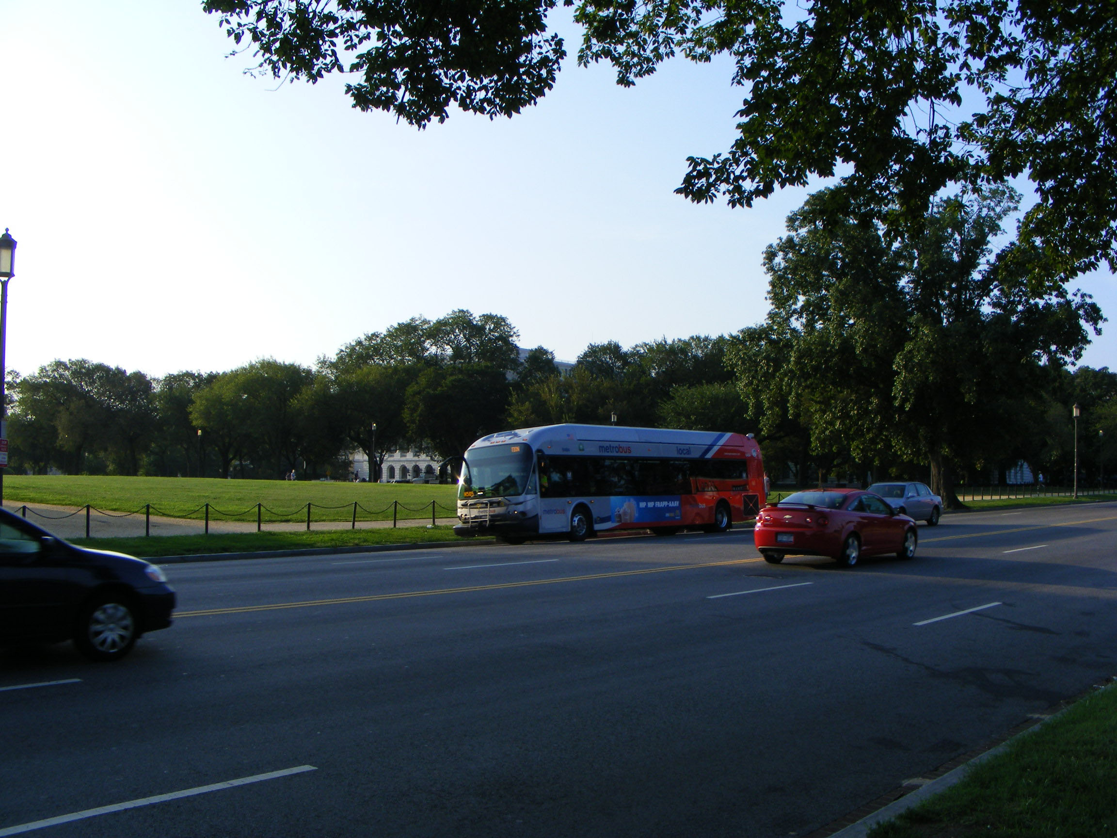 One of Washington's many open grass areas is the backdrop to New Flyer DE42LFA 6484.