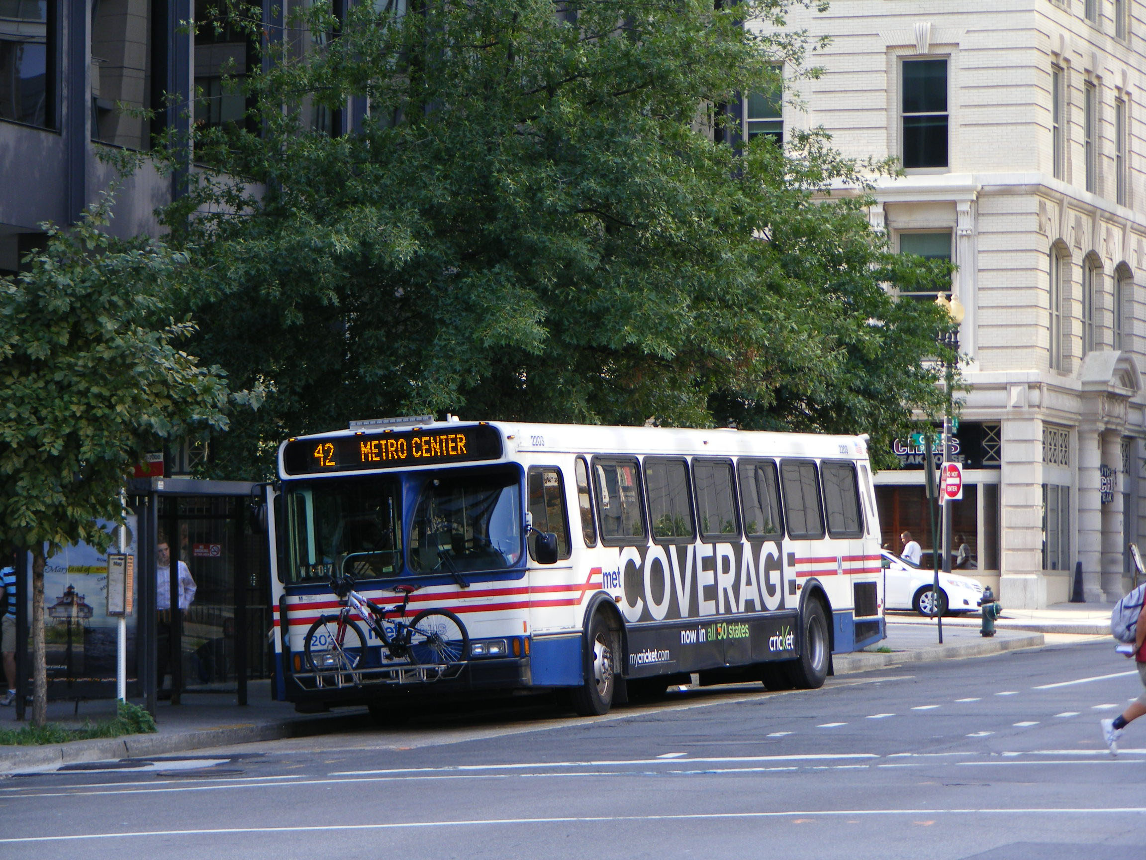 With bike on board 2203 is headed to the Metro Center on the 42.