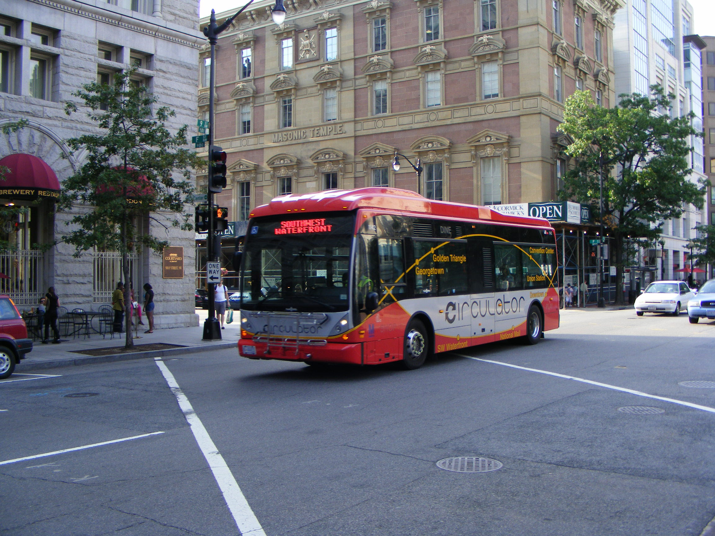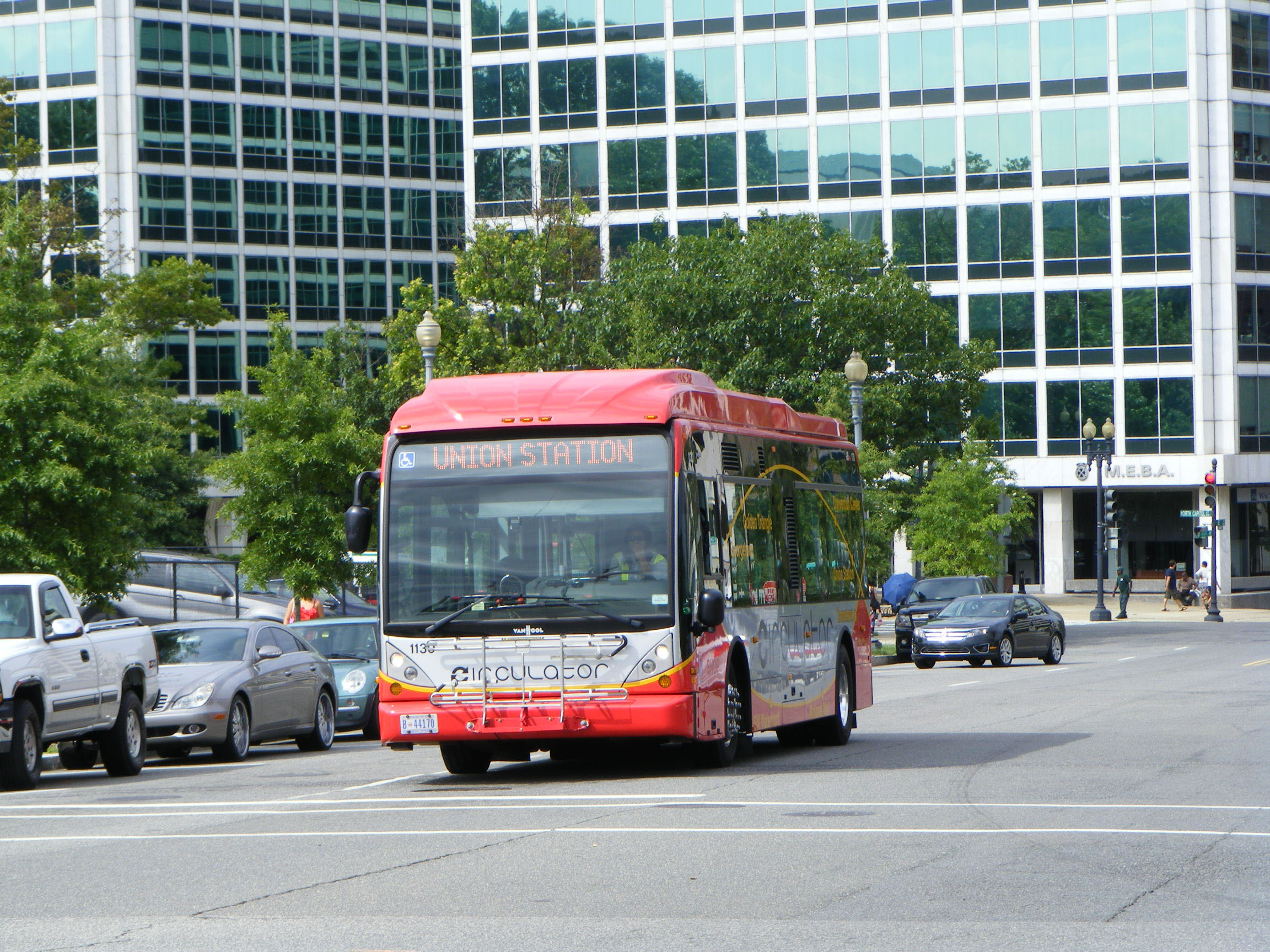 Van Hool A330K 1130, the first of the 2009 delivery, is seen bound for Union Station. The AC Transit A330 buses were displaced by New Flyer XD40 models and in 2018 Proterra electic buses joined the Circulator fleet.