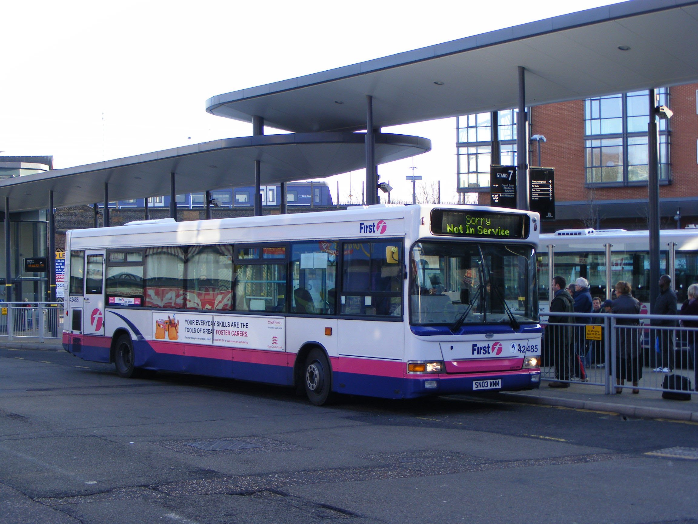 Taking a break in Chelmsford Bus Station that day was similar 42485 (SN03WMM), a Dart SLF from the TransBus era with the more attractive Pointer 2 body designed by Ogle.