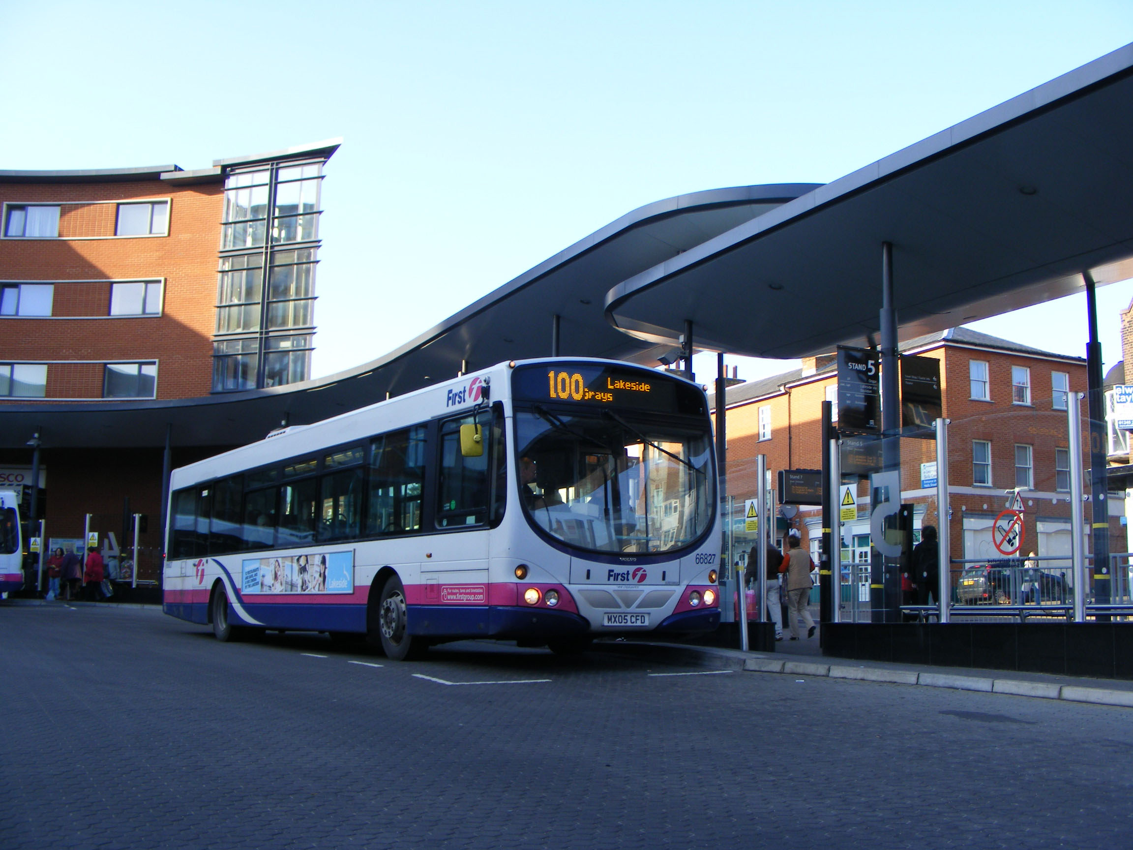 Later that day 69430 is seen passing "shuttles" Enviro200 44171 (YX11AFK) in Chelmsford Bus Station .