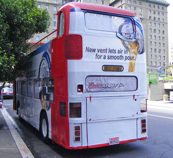 Half way across the world former 3073 (KOO791V) has had most of its top ripped off for tours of San Francisco. It is seen here in Union Square in August 2008.