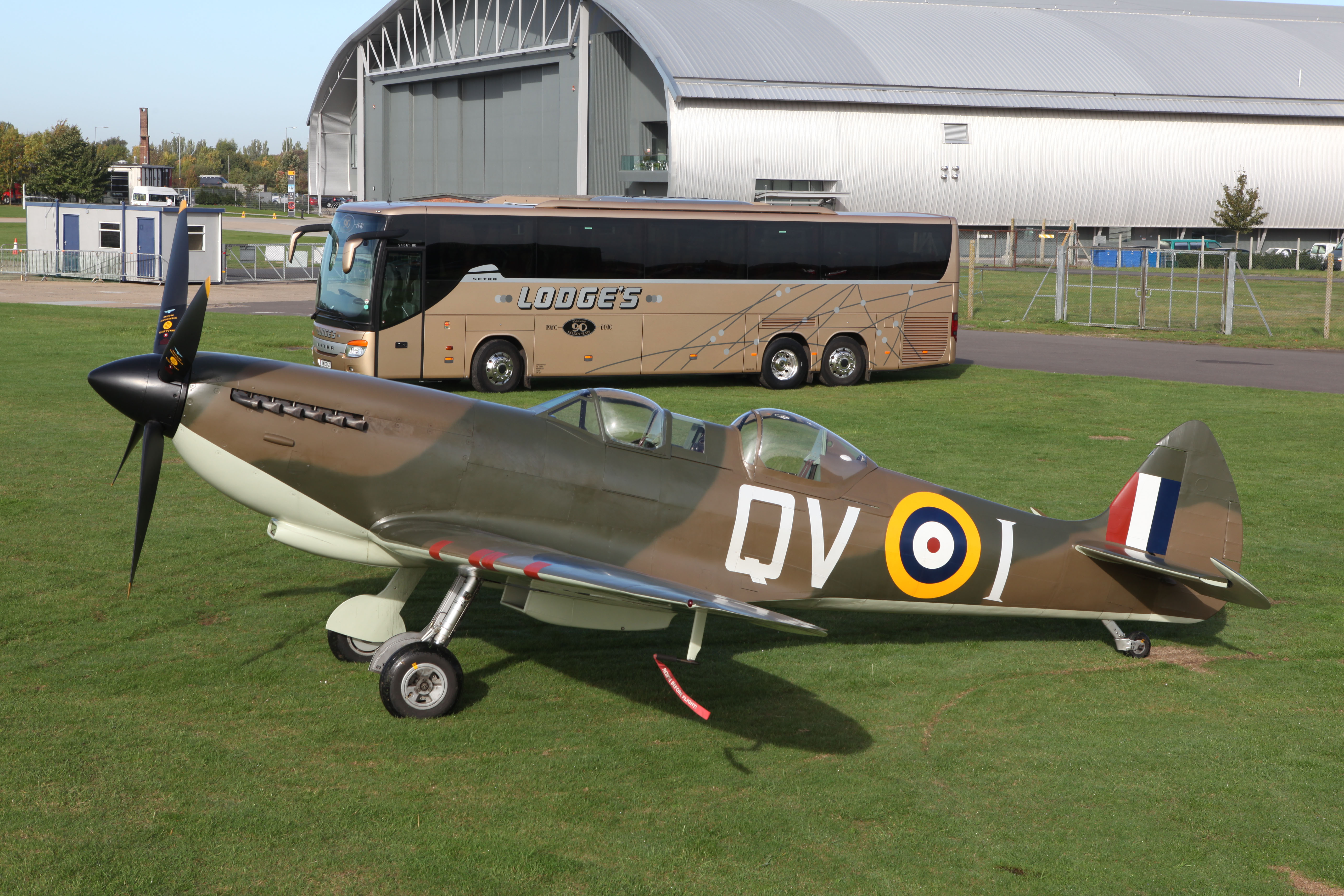 A few days after SHOWBUS in 2010, Lodge's arranged to take their new gold Setra and pose it at the Imperial War Museum with a Spitfire.