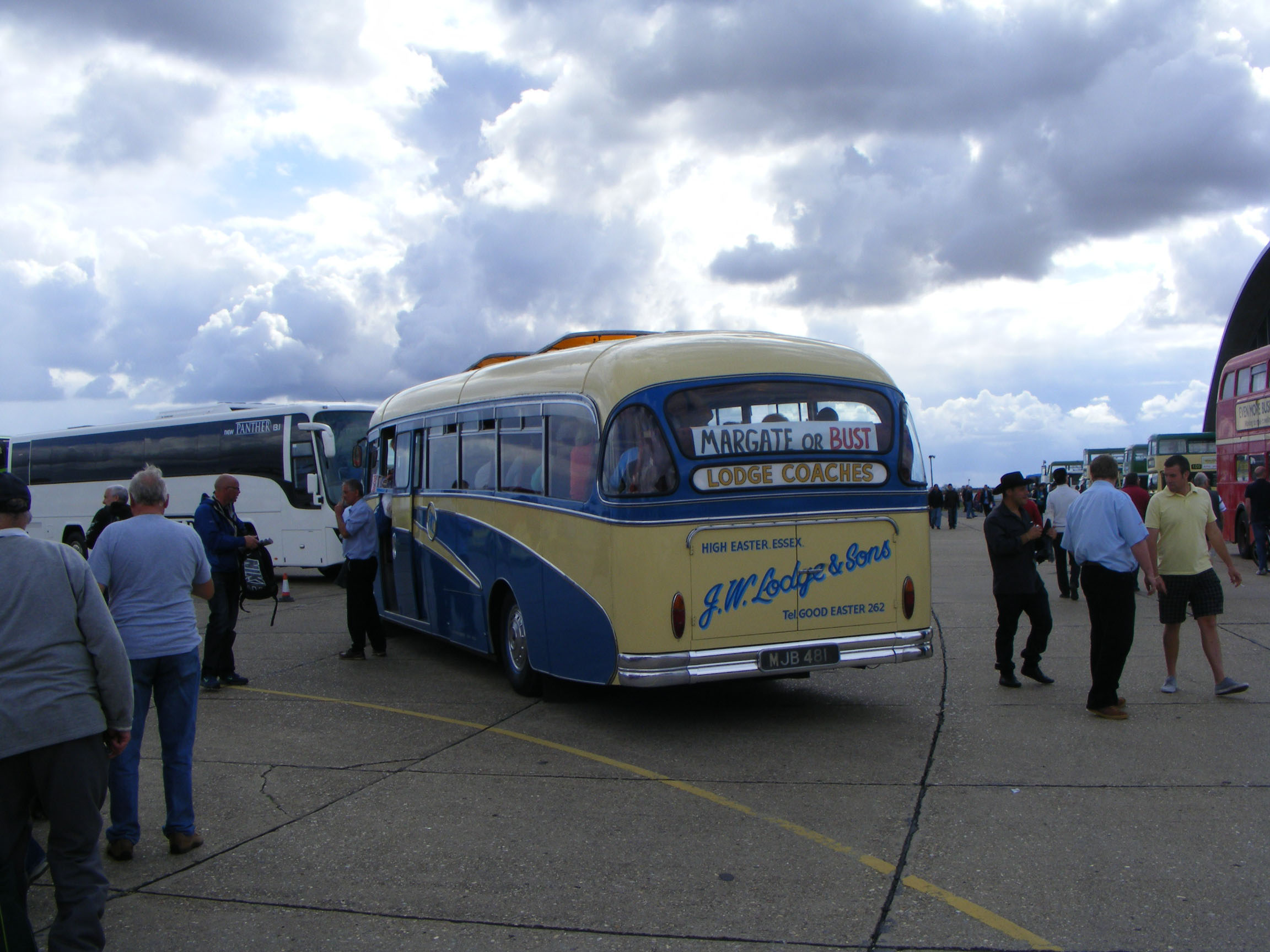 Though our photographer failed to photograph MJB481 it did appear at SHOWBUS 2013 at Stratford-upon-Avon, calling by on its return from Manchester where it had been filming for Foxy Bingo. It also appeared at the final Duxford SHOWBUS, where it is seen arriving in 2014.