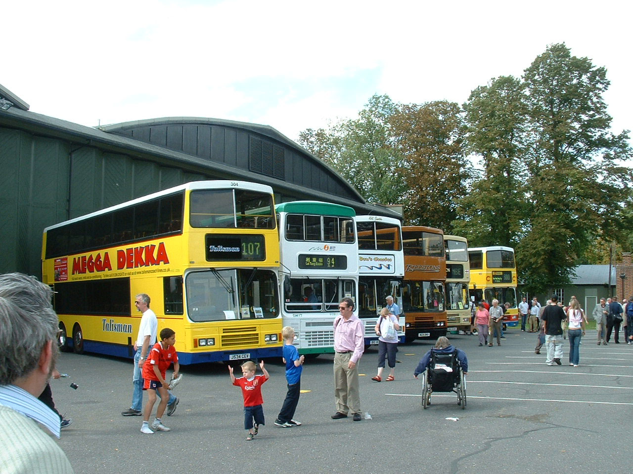 Former China Motor Bus MCW Super Metrobus ML72 (DZ1845) was imported by Ensignbus and put to work in their active fleet as 484 (F84UJN). It is seen at the London Bus Rally at Cobham in April 2002 alongside preserved London Routemaster RM2107 (CUV107C) painted gold for Her Majesty's Golden Jubilee that year. Ensignbus sold the Metrobus to Lodge's who sold it on to MASS in Anston where it got painted bright green. |