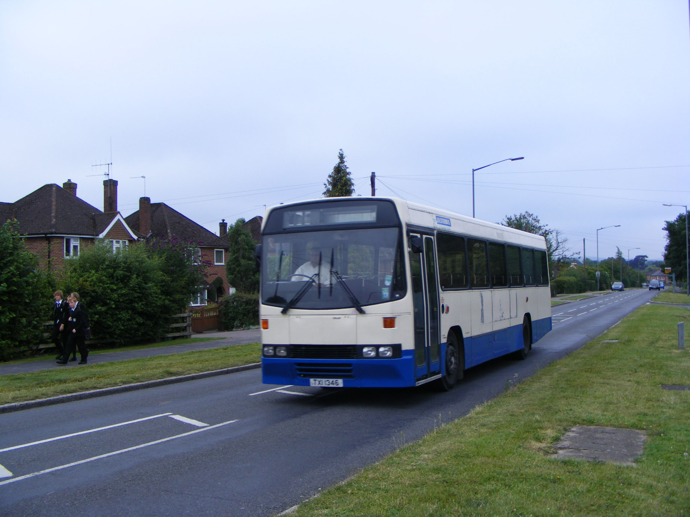 Still in full Ulsterbus livery, former Tiger 1346 (TXI1346) is seen in Marlow in July 2011 operating a Buckighamshire school contract for Neales Taxis of High Wycombe. The bus was subsequently repainted with dark red trim, but darker than Citybus, disguising its origins a little better. |