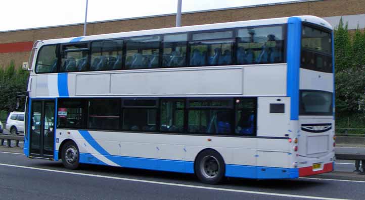 A rear view of 2287 charging up the Olympic lane. As can be seen the buses - as with all Olympic transport, except that provided by the official transport company, First - are bereft of any advertising, including fleetnames. Obviously Ulsterbus could have made a killing if they had been able to leave their fleetnames on!!! Sadly it does leave the buses looking unkempt and slightly neglected. |