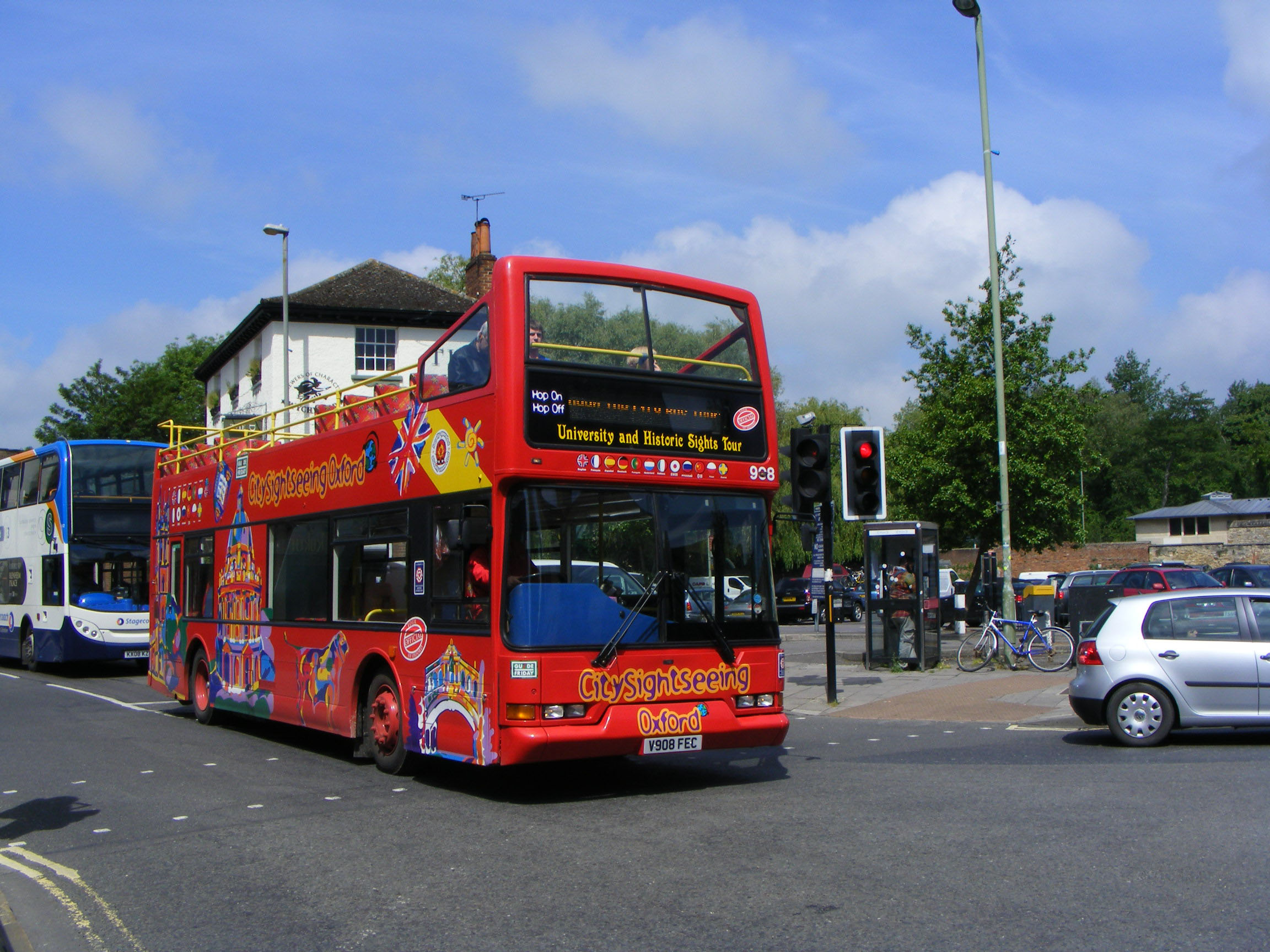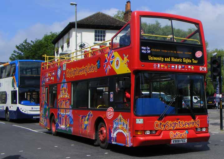 When Tappins sold out to Heyfordian, Tom Tappin retained the City Sightseeing contact for Oxford. To modernise the fleet a number of Blue Triangle Dennis Tridents with East Lancs bodies were acquired and converted to open top. In perfect June weather in 2010, former DL908 (V908FEC) is seen at work in the ancient university city.