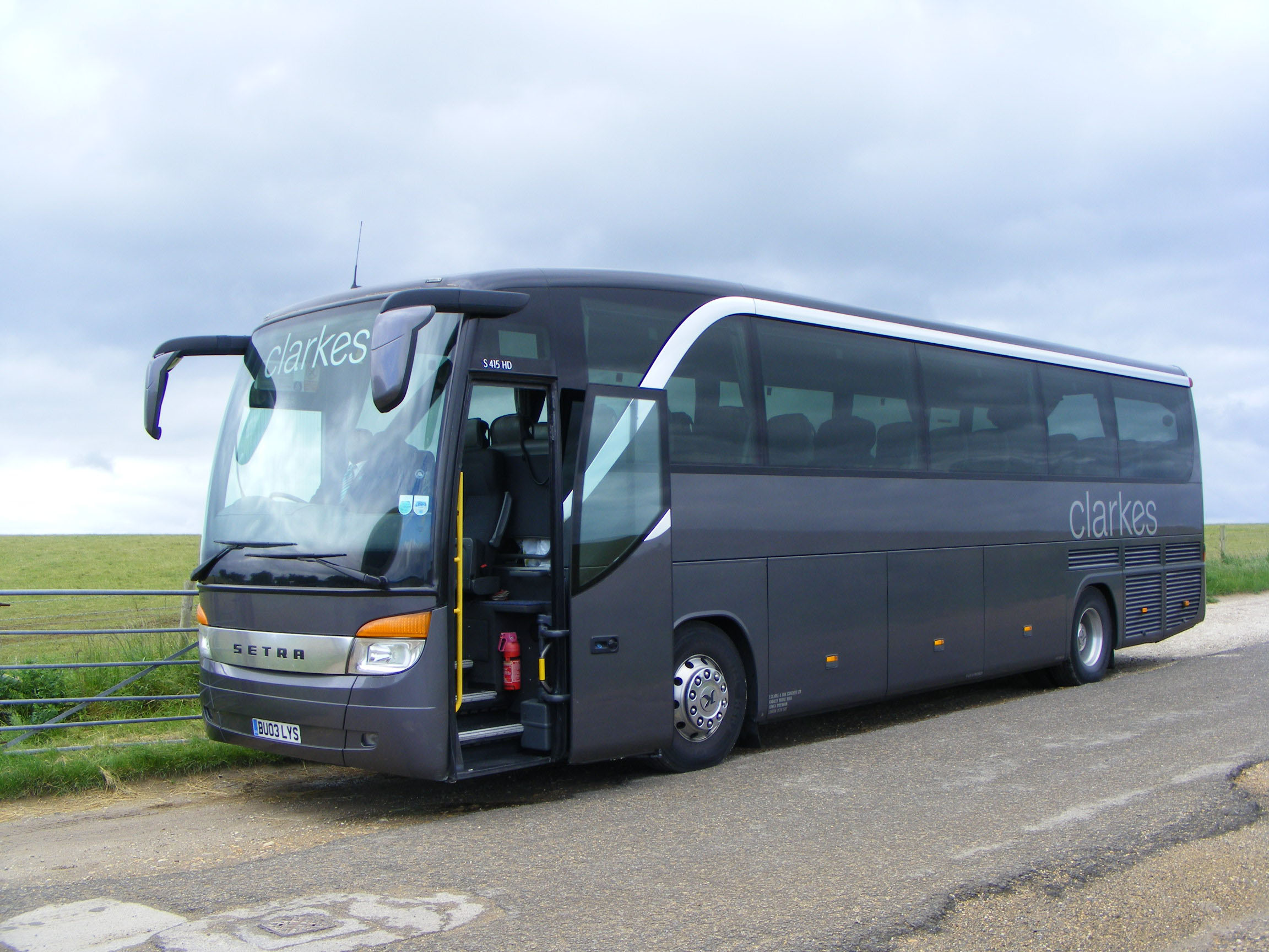 This Setra S415HD, BU03LYS, was new to Clarkes in 2003. It is seen at a crowded Stonehenge in late June 2012, hence it is parked in a nearby lane rather then the overfull coach park. The steel grey livery is confined to a select group of coaches.