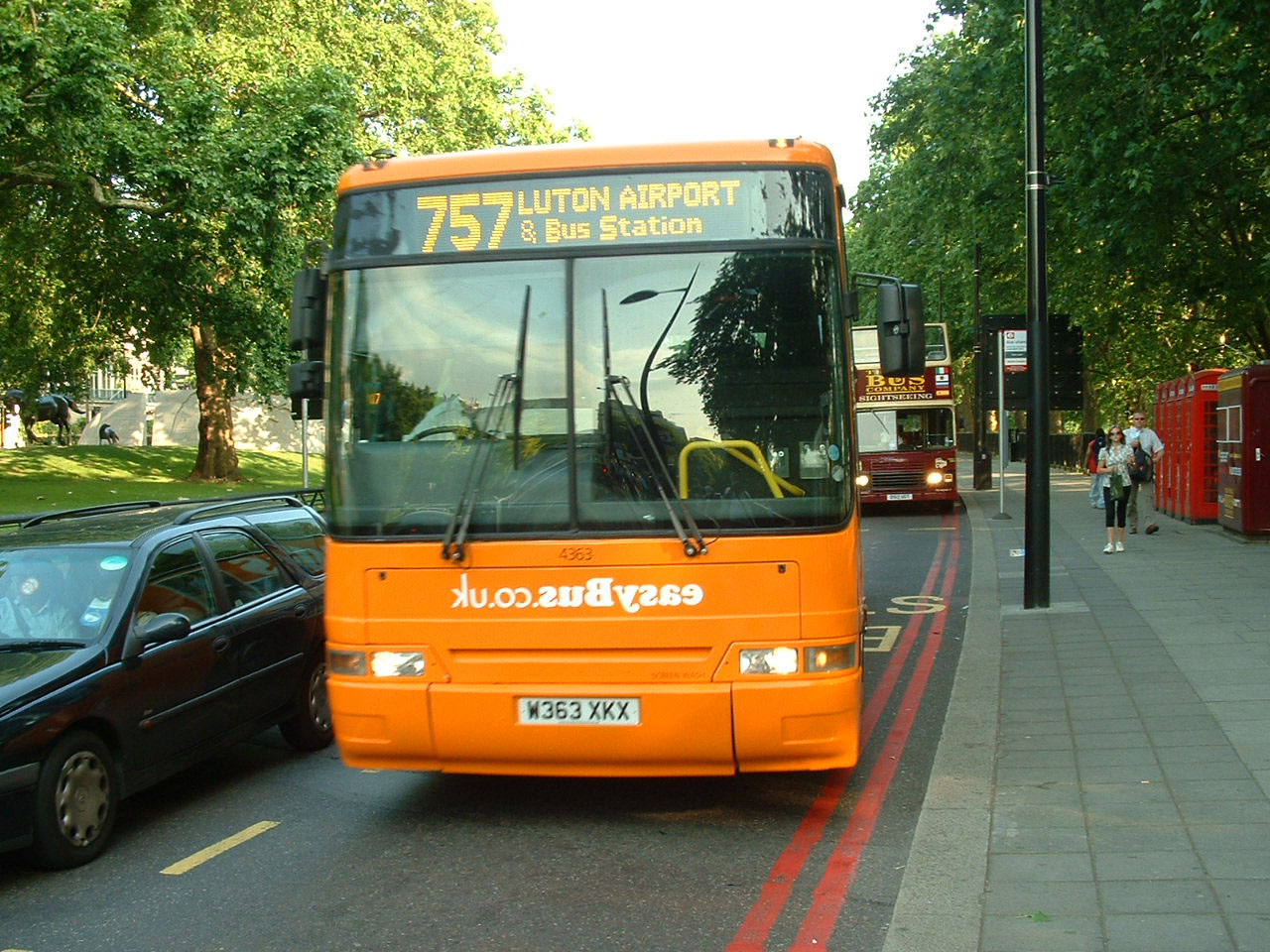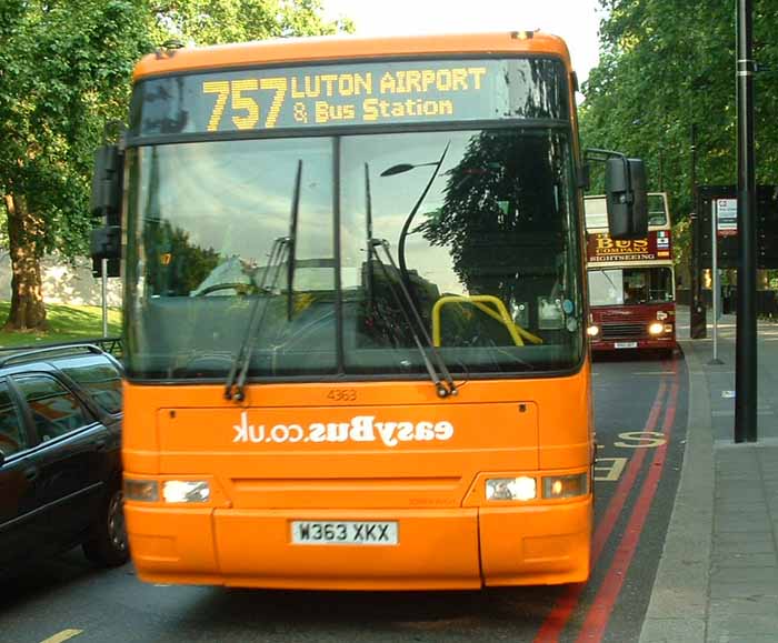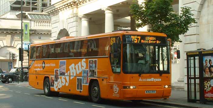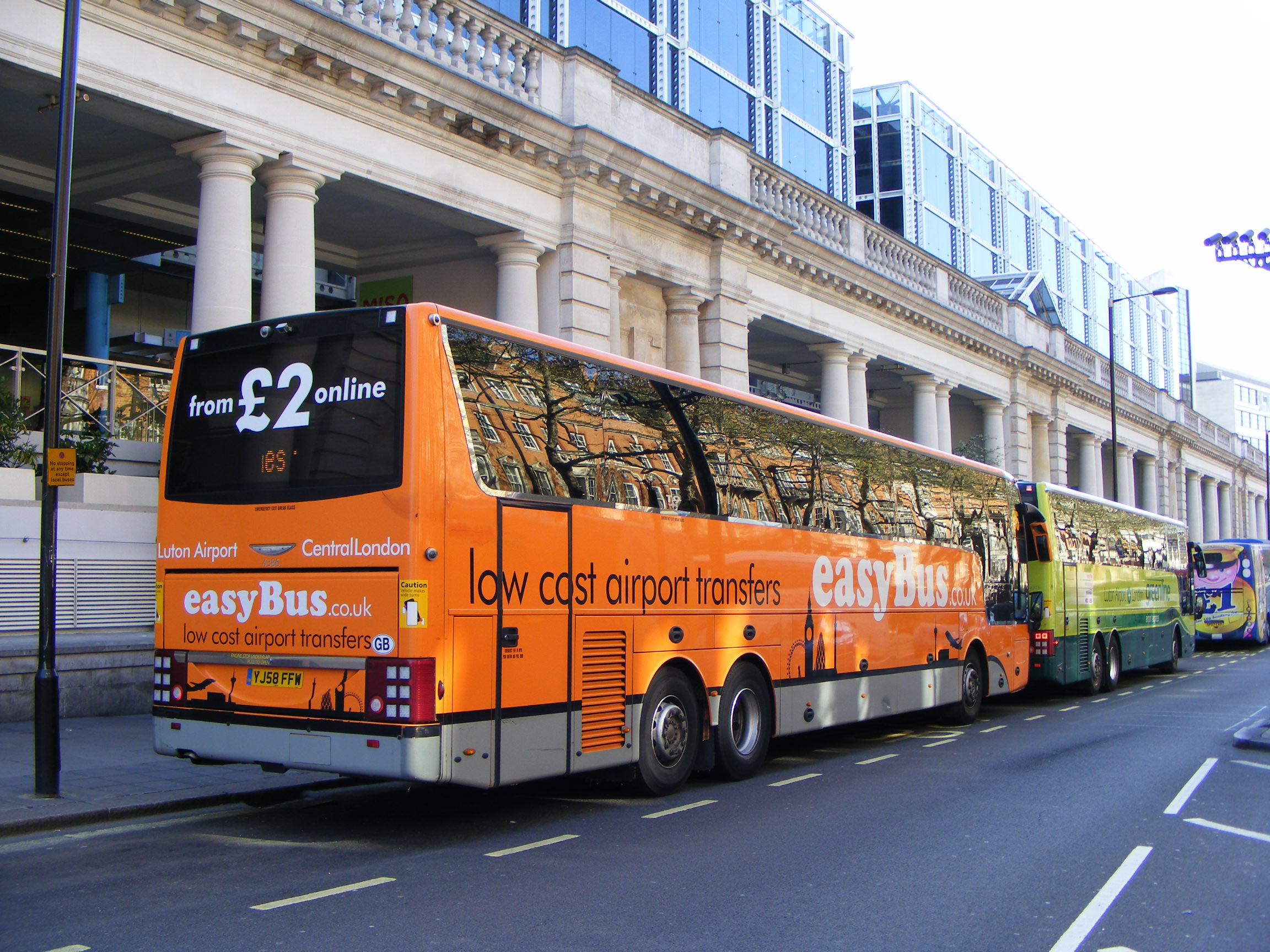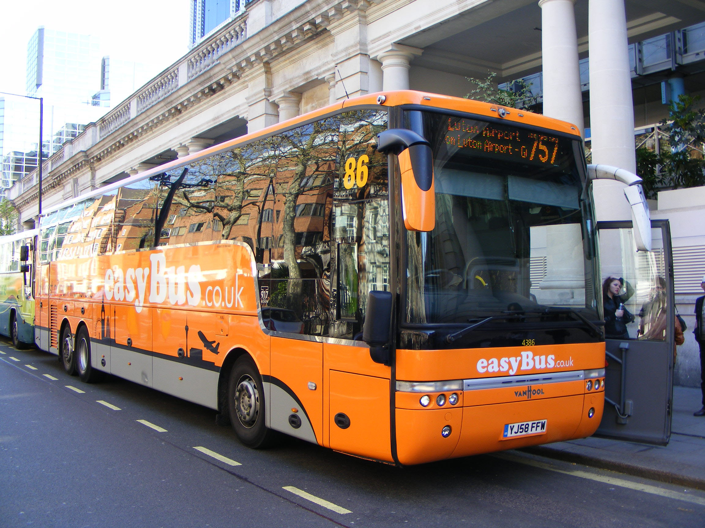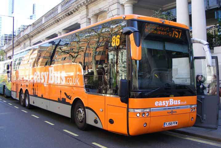 Arriva the Shires & Essex Van Hool T917 4386 is seen in Buckingham Palace Road on April 9th 2011 in full easyBus livery. Other T917s on the frequent 757 were in standard Green Line, though a new half orange half green livery had just been introduced.