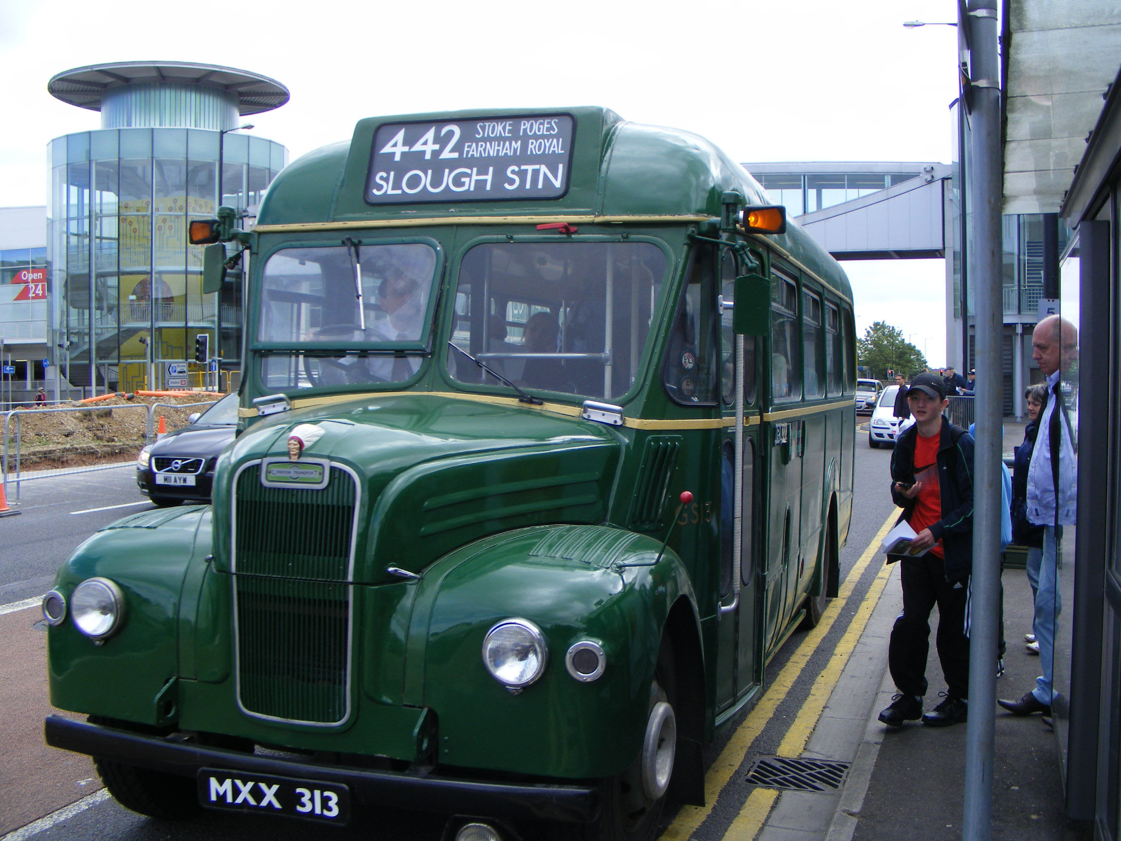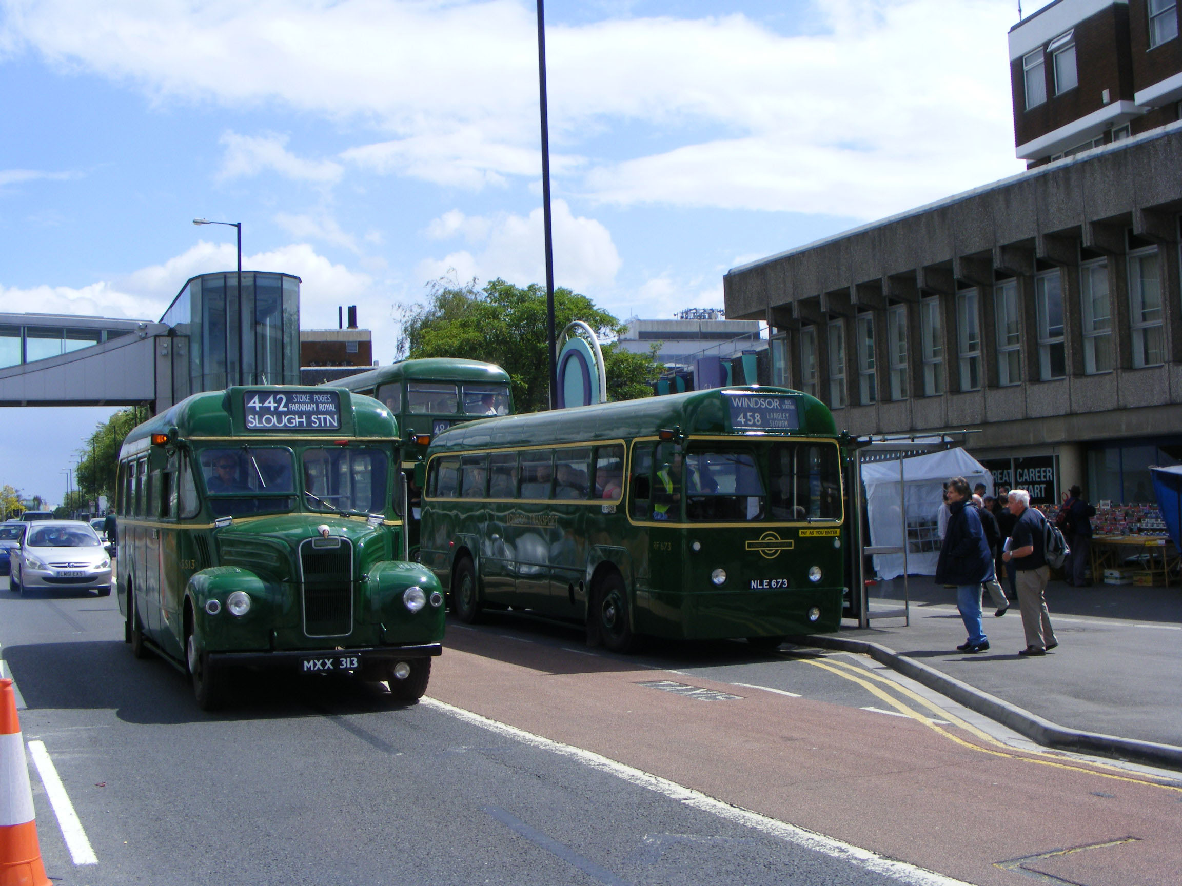 Having deposited passengers from the 442 run to Burnham Beeches, GS13 leaves RF673 loading for a 458 run to Uxbridge to take a short break.