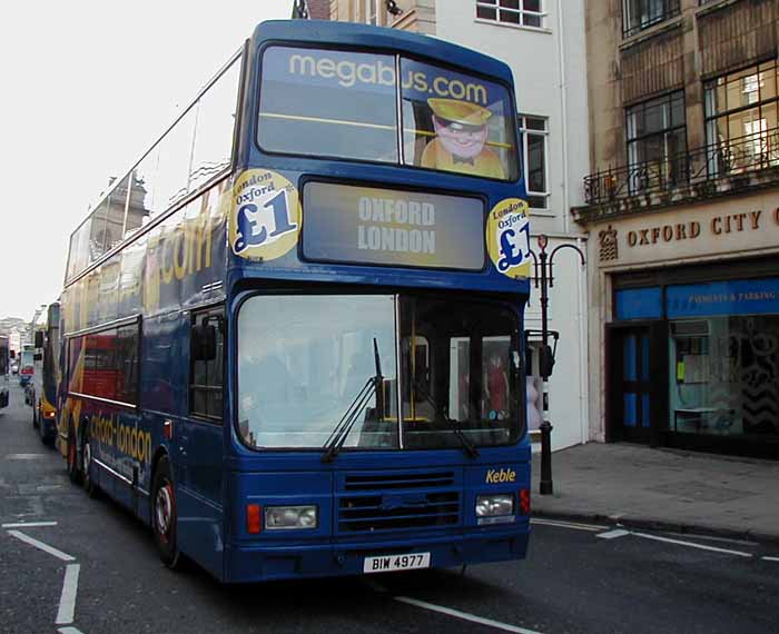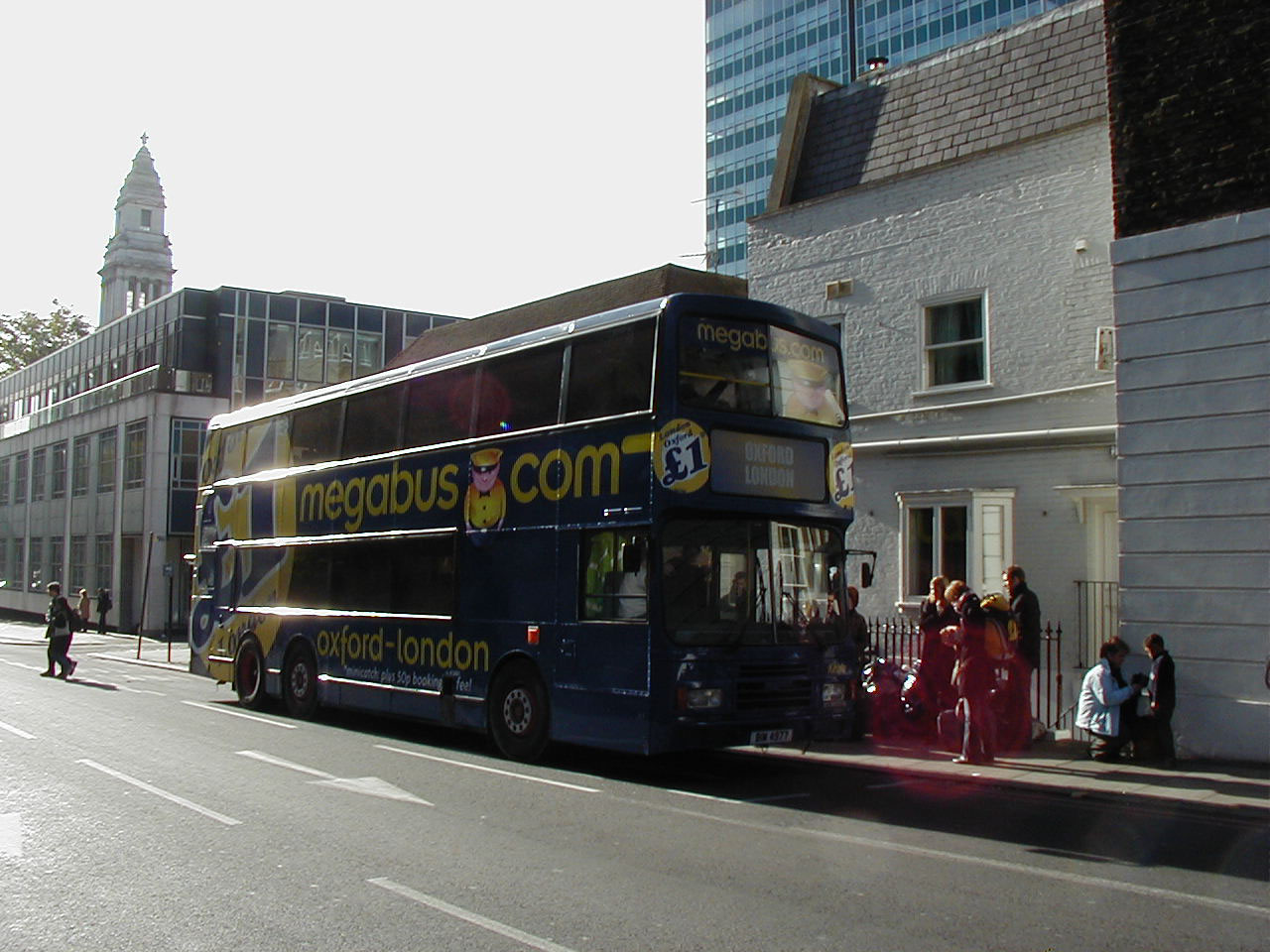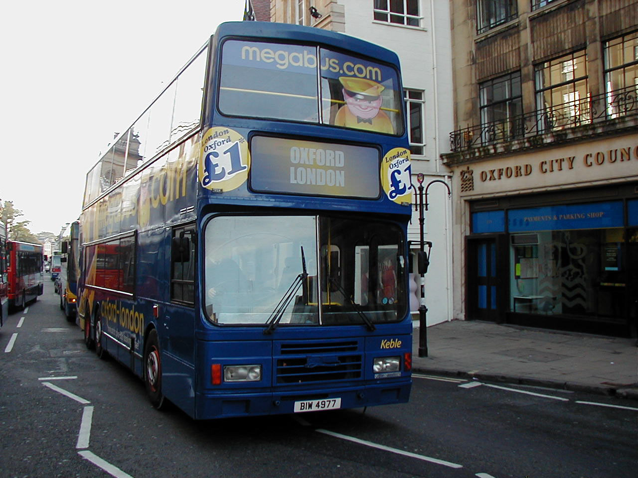 Megabus started in the UK in 2003 using ex Hong Kong Alexander bodied Leyland Olympians on the London - Oxford service. The service was in response to the threat by the Easy empire to start an Easybus route between London and Oxford and there was possible revenue abstractions from Stagecoach's long established Oxford Tube service. 13601 is seen in Oxford in October 2003. |