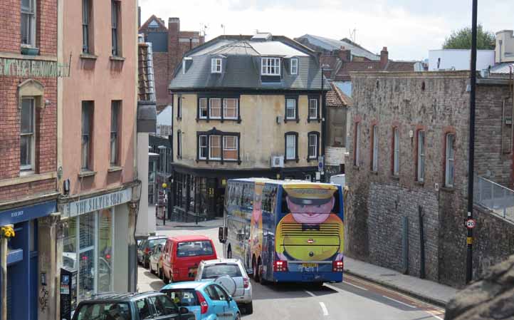 Astromega 50239 (CN61FBA) is seen heading down Colston Street in Bristol in August 2014 to the Megabus city centre stop. Picture ref A4063 |