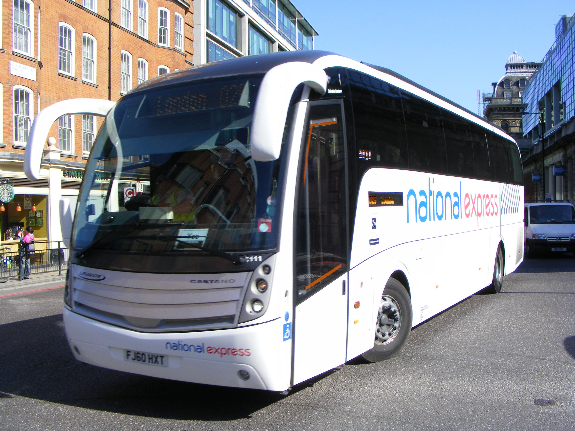 Volvo B9R C111 (FJ60HXT) is seen leaving Brighton for London in September 2012.