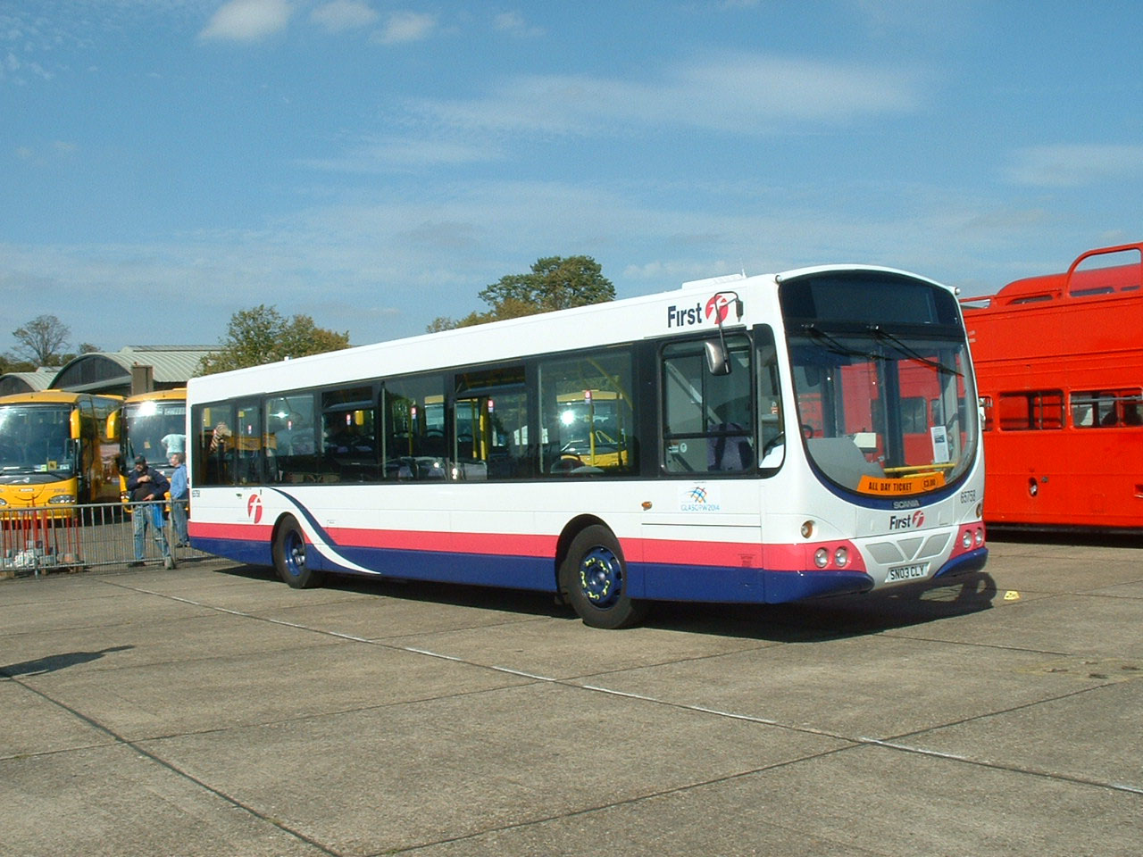 Charlie Nicholson, a long standing member of the SHOWBUS team, grabbed the camera as the Plaxton Gold Run arrived and included this picture of the First display, alongwith the PPH fleet.