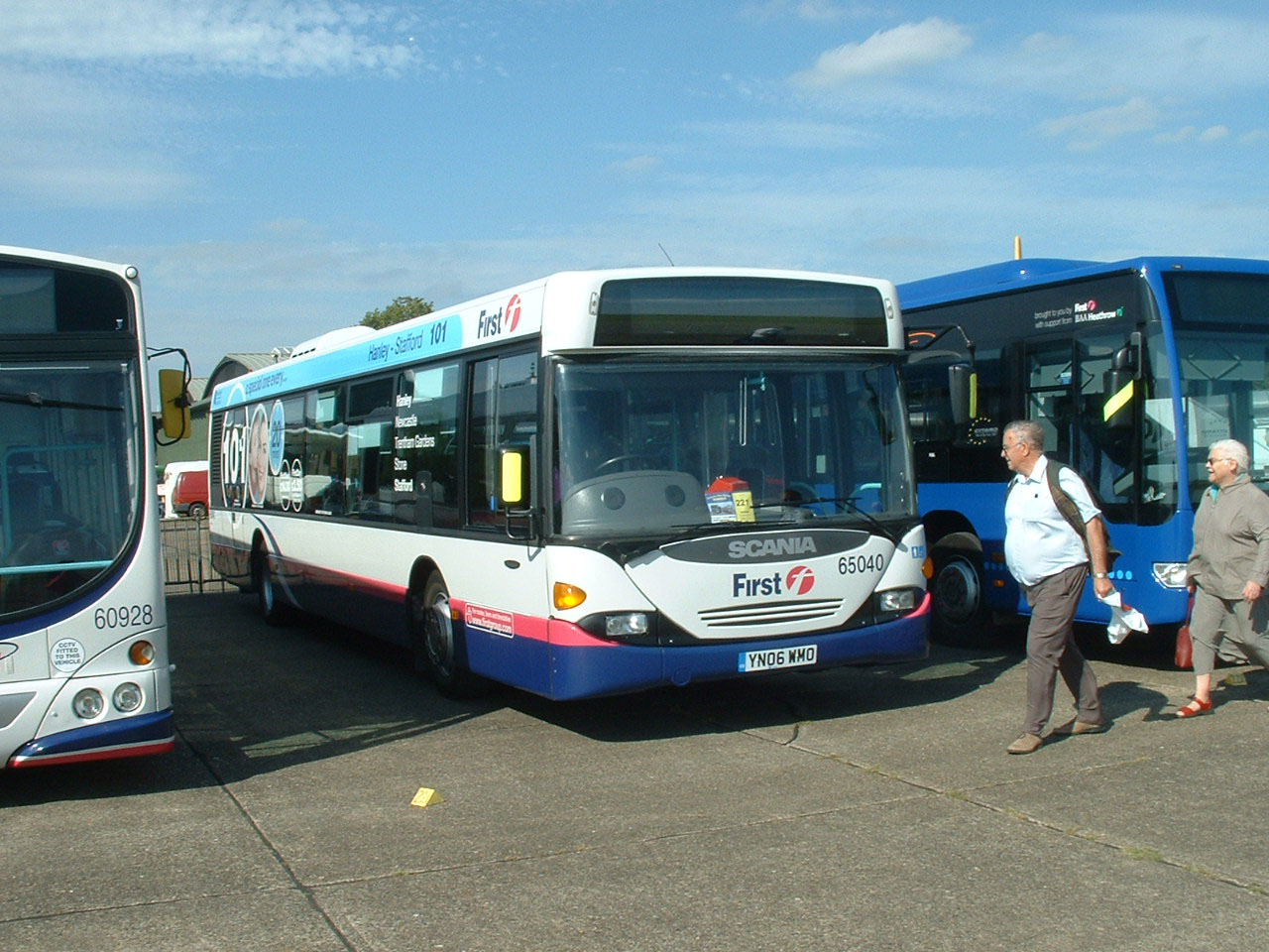 Typical of the variety across First fleets, Potteries has become home to Scania Omnicity's like CN94UB 65040 (YN06WMO). The bus has sympathetic route branding for trunk service 101 from Hanley to the county town of Stafford.