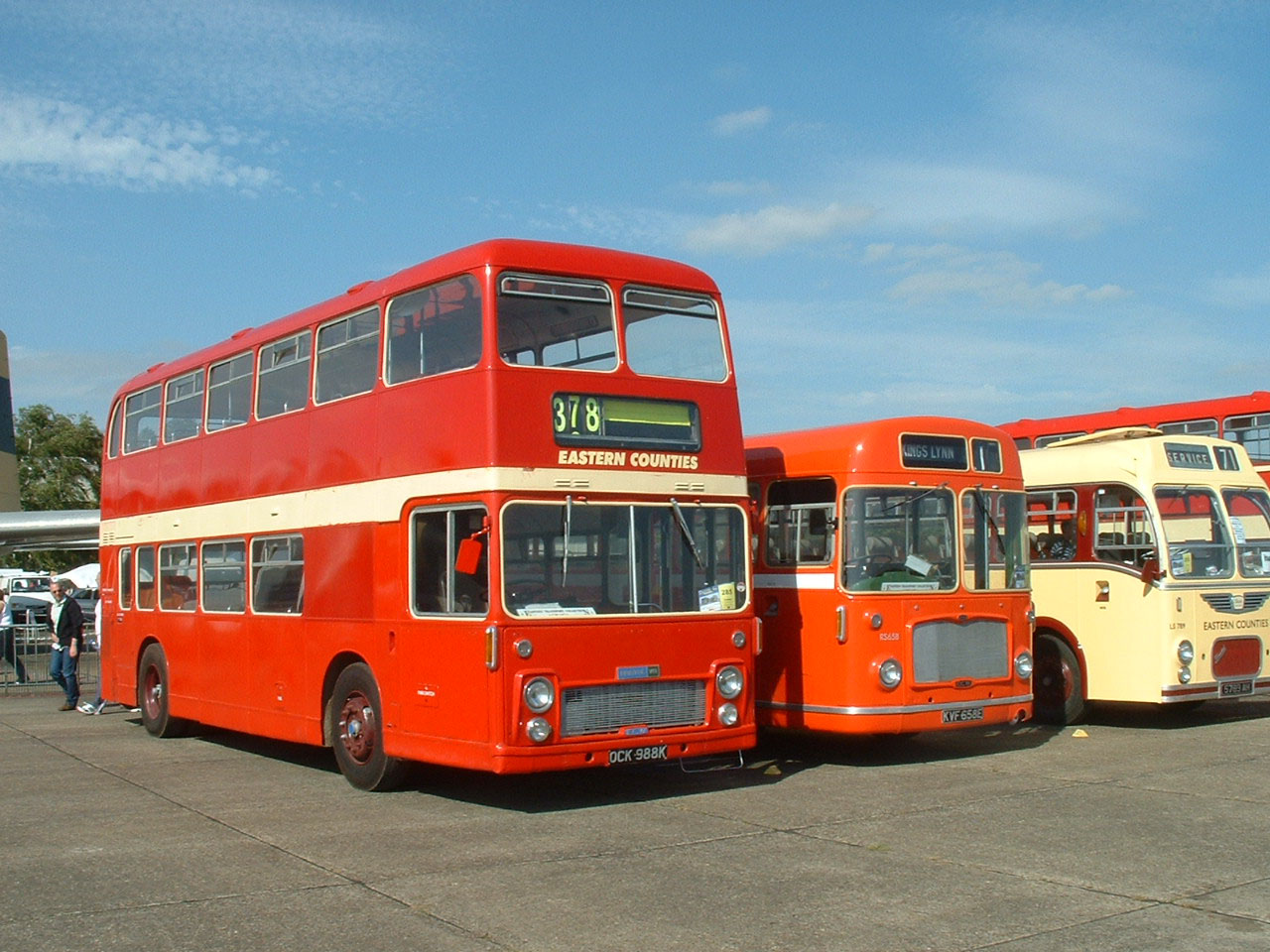 Adjacent to the First display were the regular SHOWBUS troup of Eastern Counties preserved vehicles which also got to bask in the sunshine. Eastern Counties is now part of First. The vehicles on display reflected various stages in the company's distinguished history. The VR has the early privatisation style of fleetname on the basic Tilling Red livery that the company readopted. The bus was new to Ribble as 1998 (OCK998K) but served EC as VR378. Alongside in NBC poppy red and white is the rarer Bristol RESL - as opposed to the longer RELL model - with the rarer still original style of ECW body for the RE model: RS658 (KVF658E).