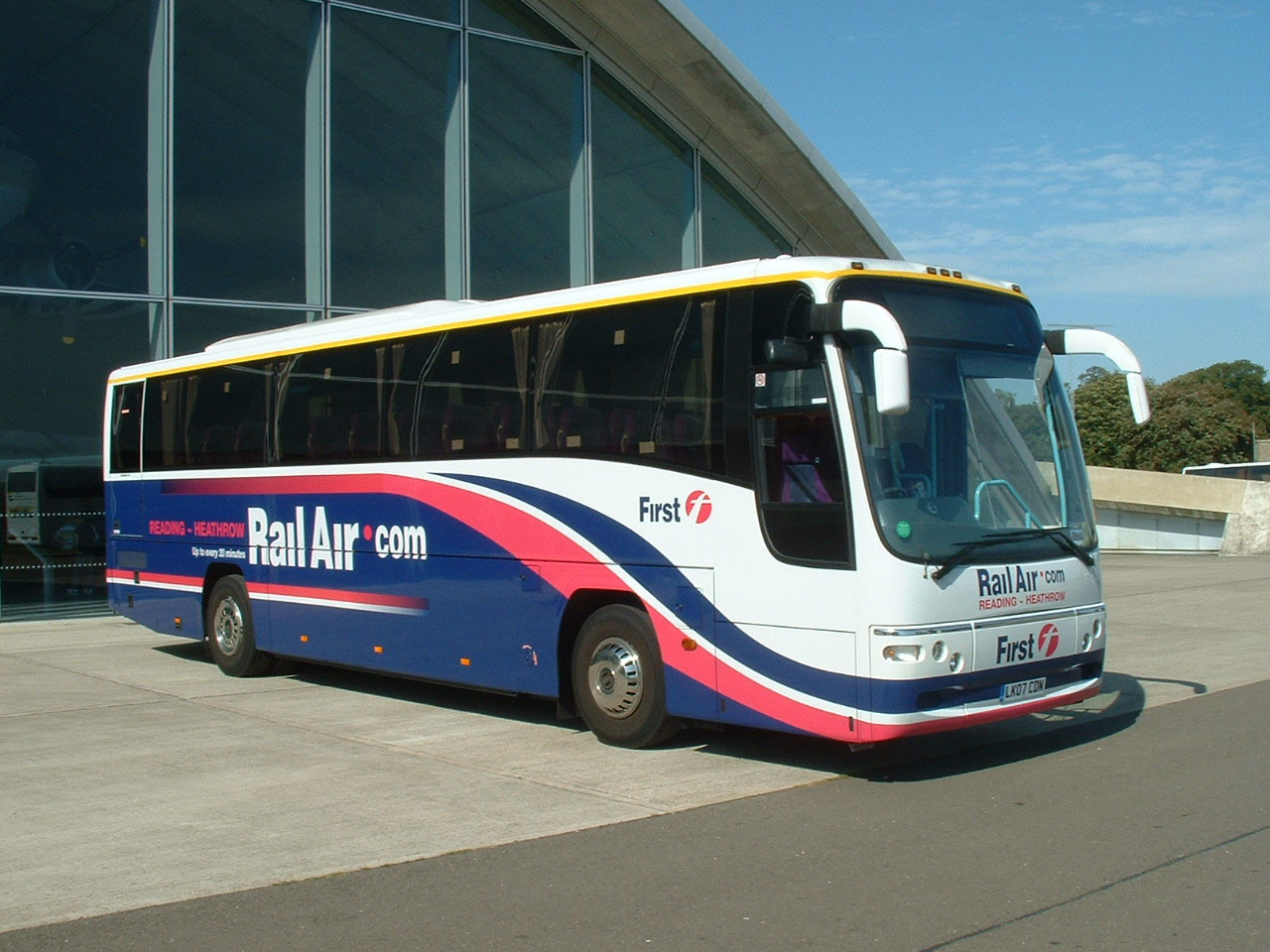 After flirting with Irizar bodied Scanias, the latest delivery for the Reading-Heathrow railair service is a trio of Volvo B12B Plaxton Panther coaches. The Reading Rail-Air link service has a long history dating back to 1967 when Thames Valley operated Duple Viceroy bodied Bedford VAMs. First Berkshire 20613 (LK07CDN) has a pride of place display in front of the American Air Museum, adjacent to the main First display.