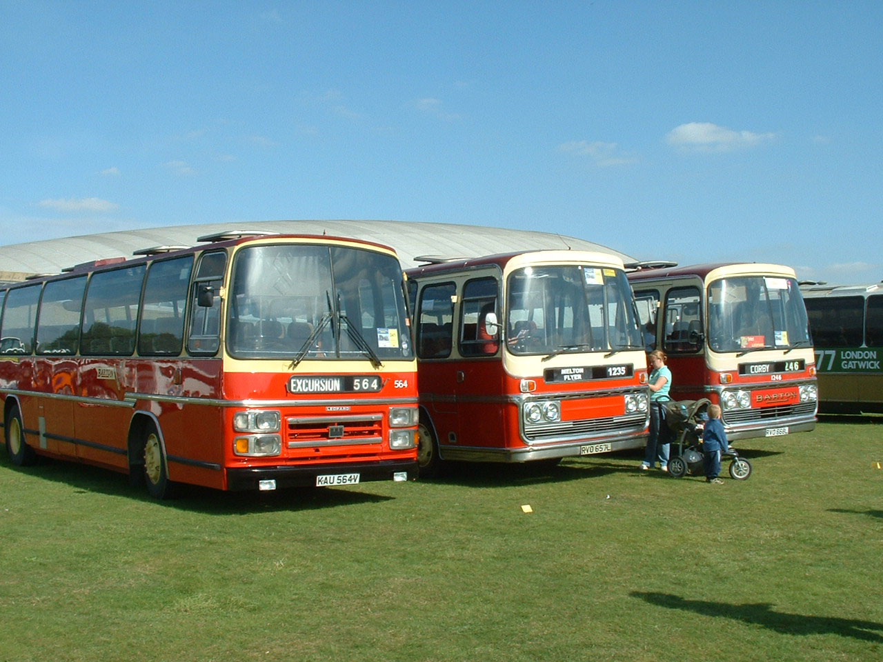 A fascinating mix of Plaxtons. First on the right is a Paramount bodied Dennis Javelin from Lodge's, sister the coach from the same batch entered by David H Harrod Coaches, this is followed by a Paramount bodied Quest 80VM built for Excelsior. Next up is the preserved Great Ouse Valley Panorama Elite III bodied Bedford YRQ followed by the white Bedford YMP. The next is a bus in West Midlands PTE livery. The bus was built by and new to Midland Red, one of their S23 models. These buses had their bodies finished by Plaxton. Two more unidentified Supremes finish the line.
