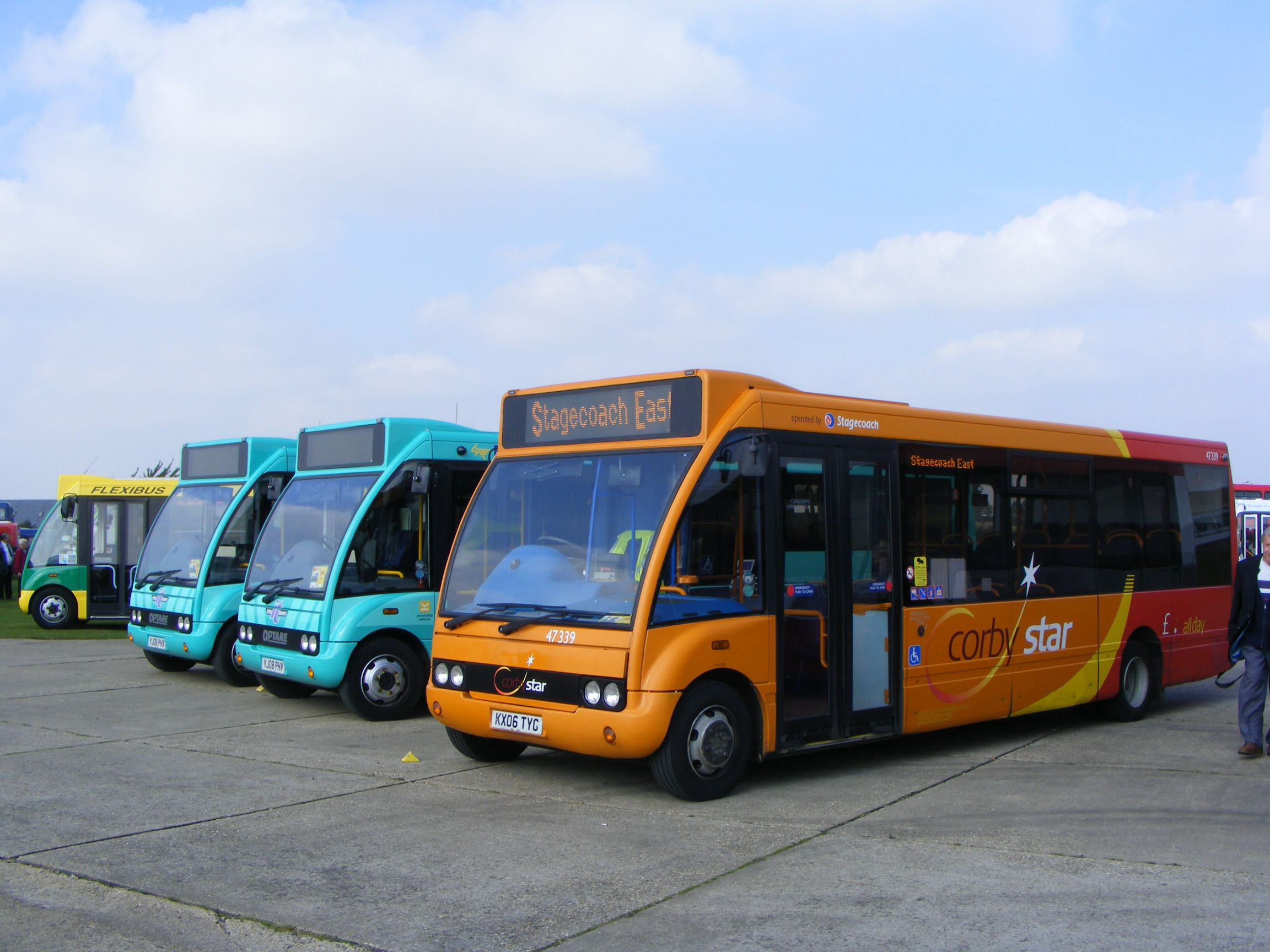The Brylaine Solos ended up parked next to another Stagecoach East branded Solo, Corby Star 47339 (KX06TYC). The Solos were part of a big arc of Optare entries. The one just best of all can just be seen in Warwickshire County Links yellow and jade livery, entered by A-Line Coaches of Coventry.