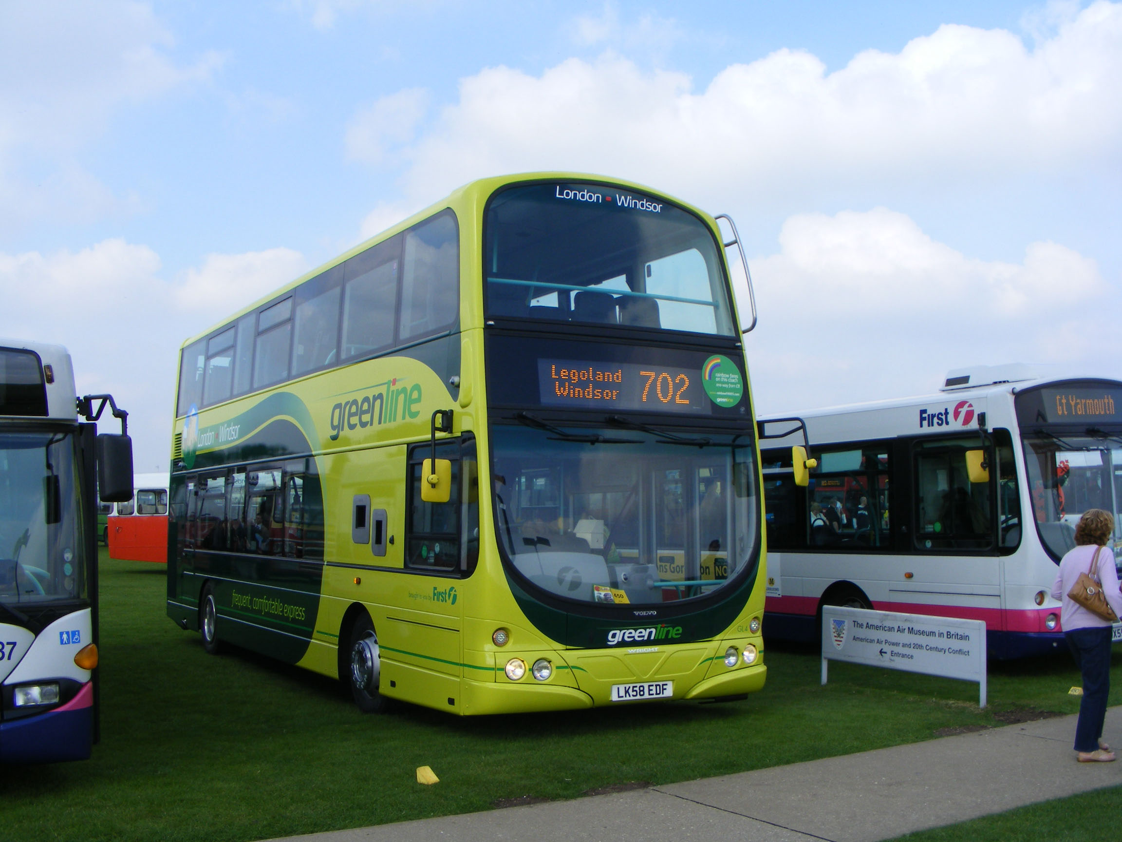 Doubledeckers have not been a regular feature of Greenline services once the fleet of coach bodied ECW Olympians were relegated to bus work nearly twenty years ago. First Berkshire has heralded a new era of Greenline deckers with a small batch of Volvo B9TLs with Wright Eclipse Gemini complete with wifi, leather seats and tables for the London - Windsor, Legoland and Bracknell services.