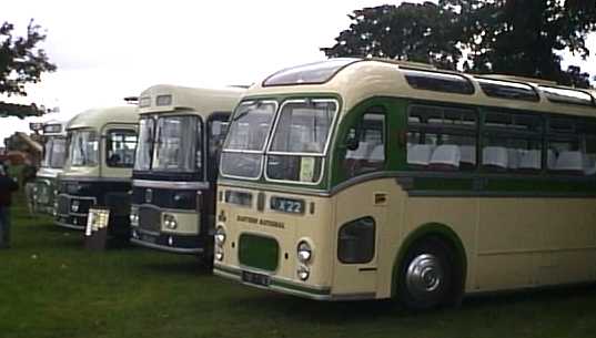 RELH in a coach shell, followed by ex Ribble RESL bus in Hastings & District livery, next Eastern Counties RE869