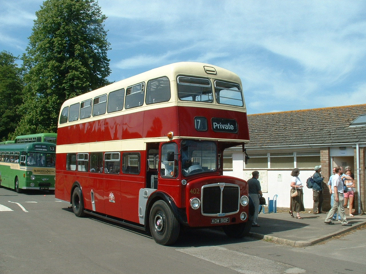 Sister vehicle 402 (KOW910F), is seen at the gloriously warm and sunny 2006 Alton Rally where it was giving rides to the attending visitors - with some ex-Aldershot & District buses behind. |