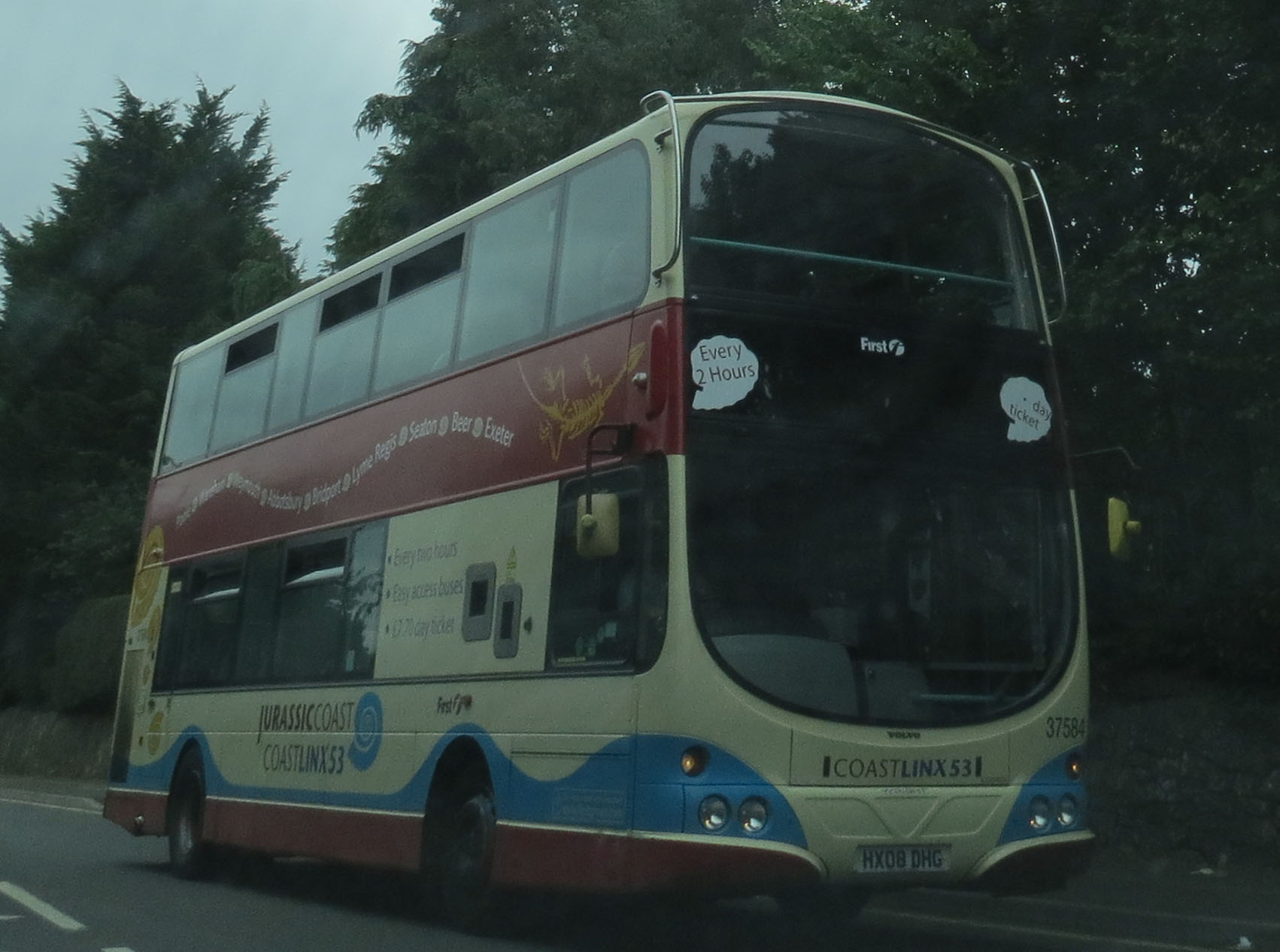 These are the sort of spectacular views one can expect as 37580 (HX08DHL) is seen from the top deck of a Weymouth bound bus.